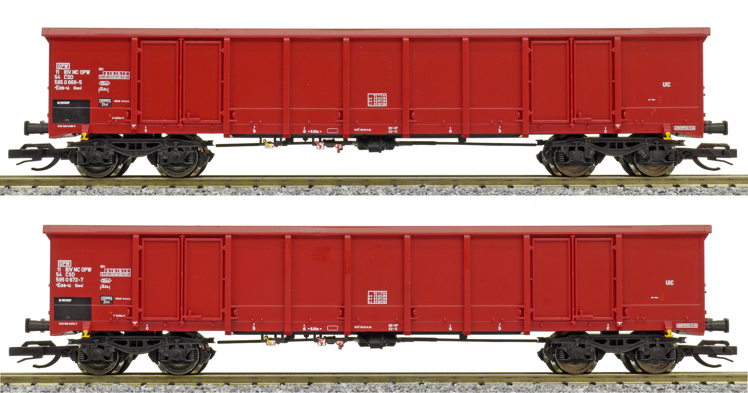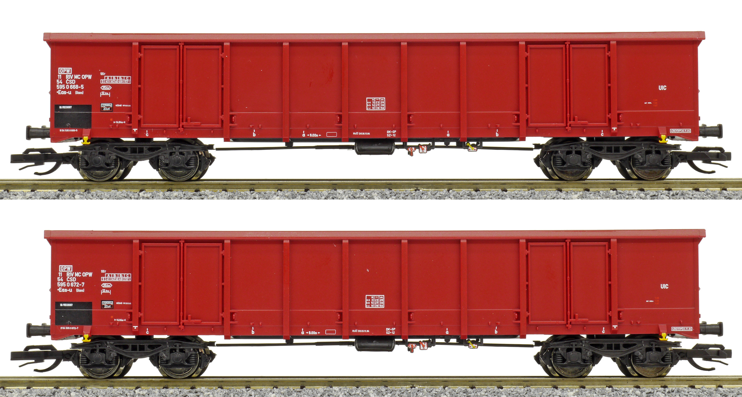 | set dvou nákladních otevřených vysokostěnných vozů |