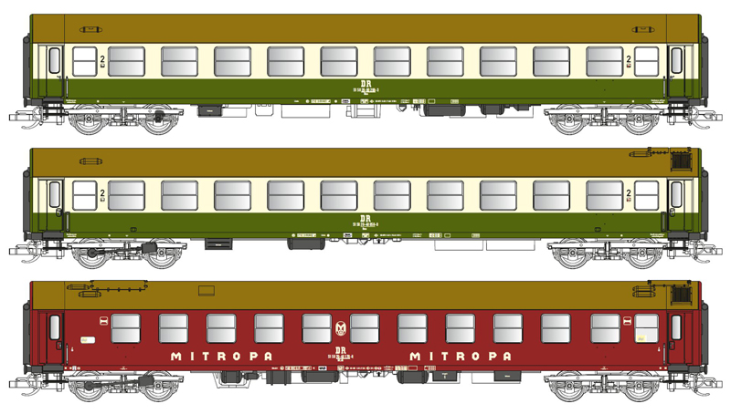 | rychlíkový vůz zelený (RAL 6002) -slonová kost (RAL 1015) s hnědou (RAL 8000) střechou 2. tř. |
