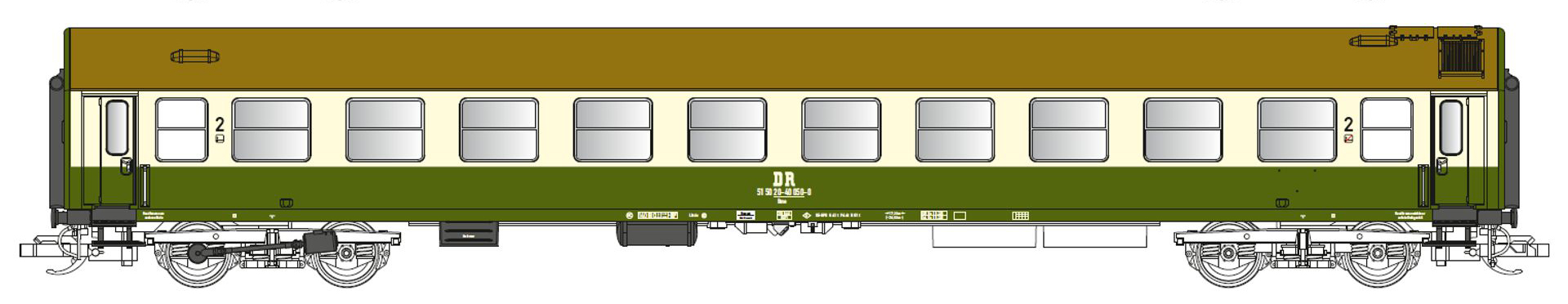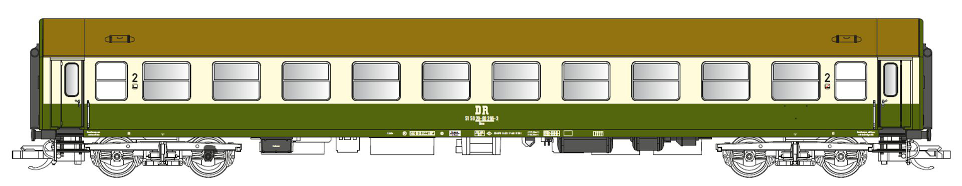 | rychlíkový vůz zelený (RAL 6002) -slonová kost (RAL 1015) s hnědou (RAL 8000) střechou 2. tř. |