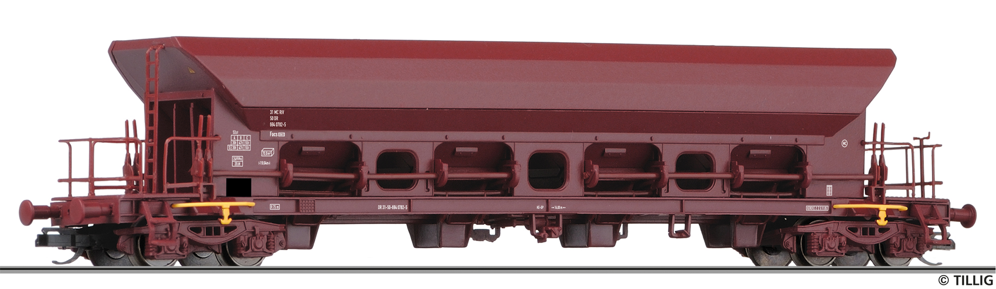 měřítko 1:120 - rozchod kolejí 12 mm kinematika krátkého spřáhla (KKK) podle normy NEM 358 9x159 mm - celková délka modelu přes nárazníky 9x4 - celkový počet náprav nebo rozložení náprav