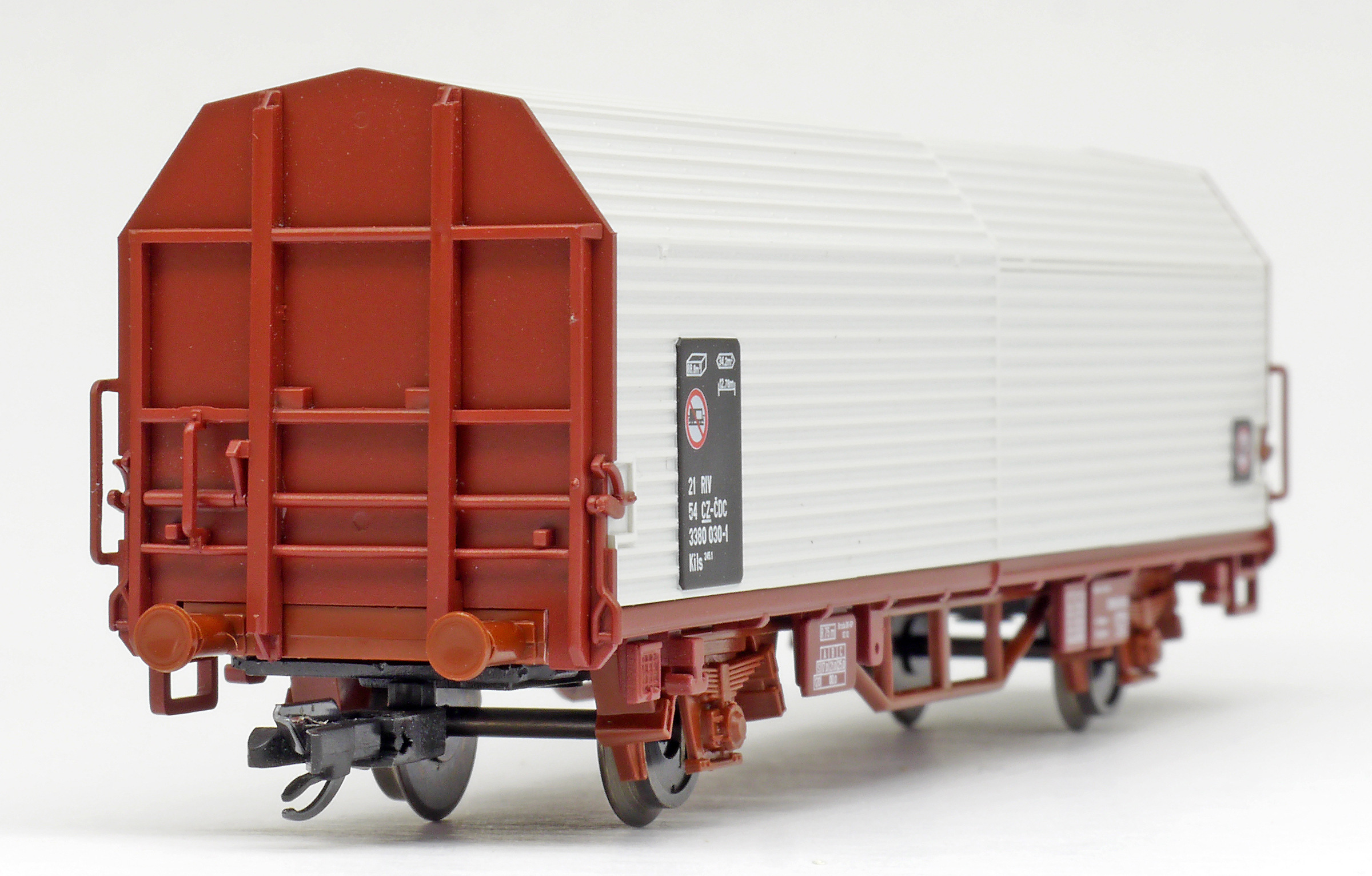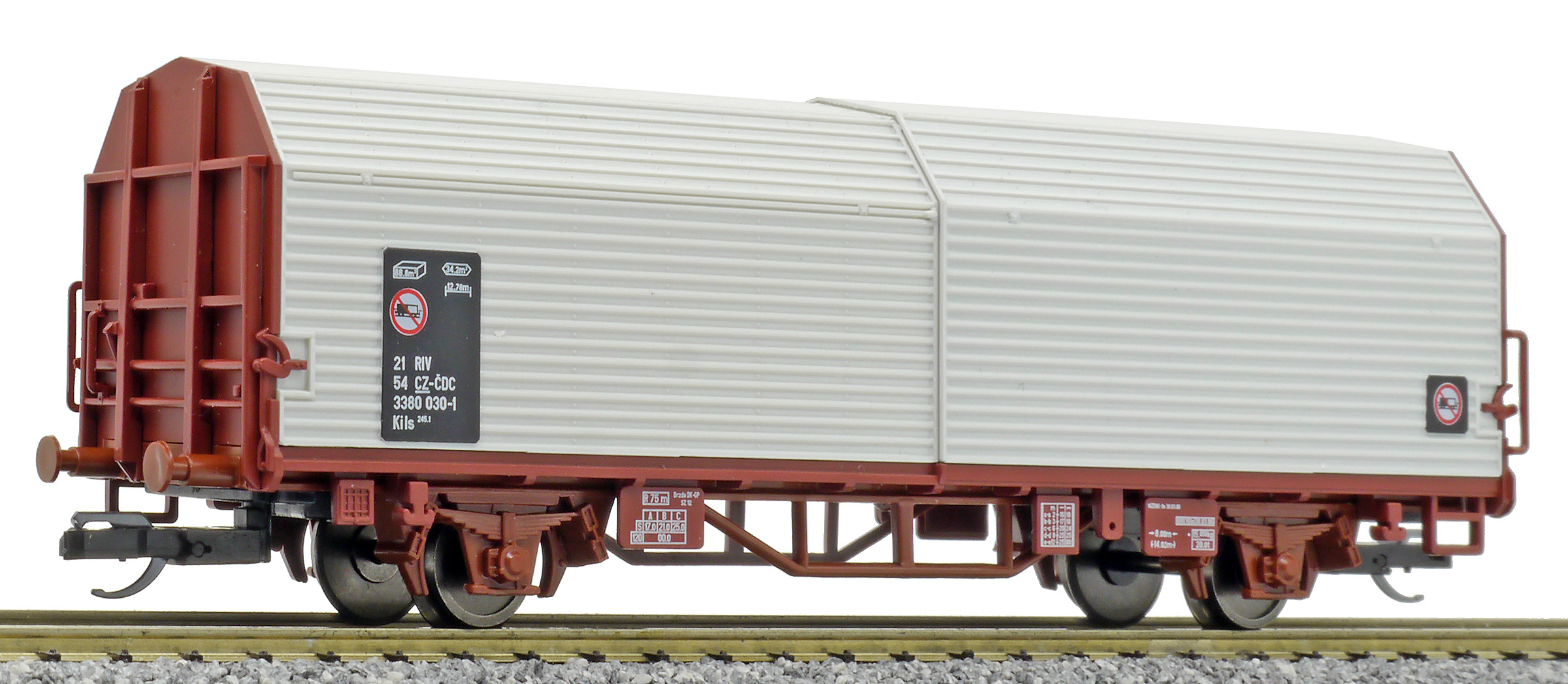 měřítko 1:120 - rozchod kolejí 12 mm kinematika krátkého spřáhla (KKK) podle normy NEM 358 12x117 mm - celková délka modelu přes nárazníky 12x2 - celkový počet náprav nebo rozložení náprav
