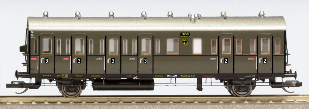 | oddílový osobní vůz zelený s stříbřitou střechou 2./3. tř. |