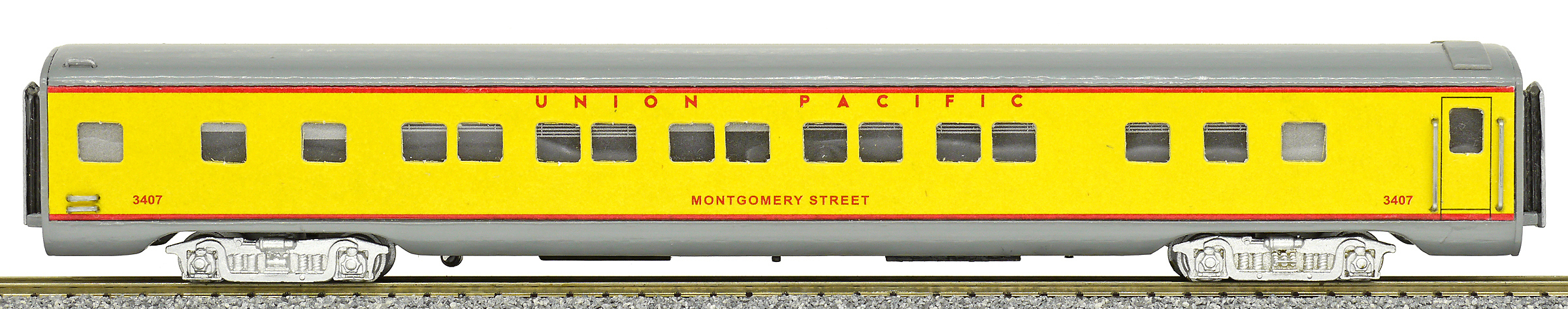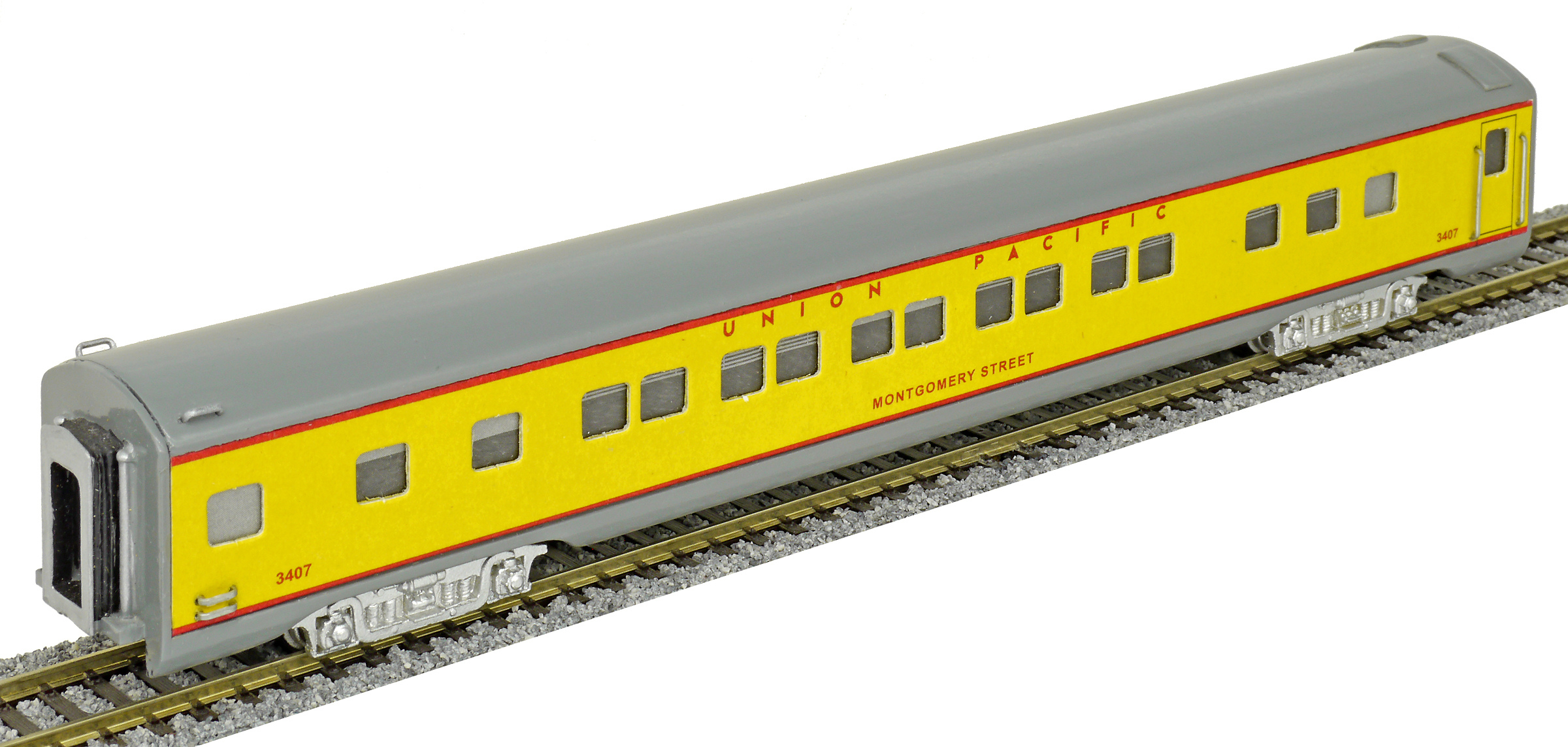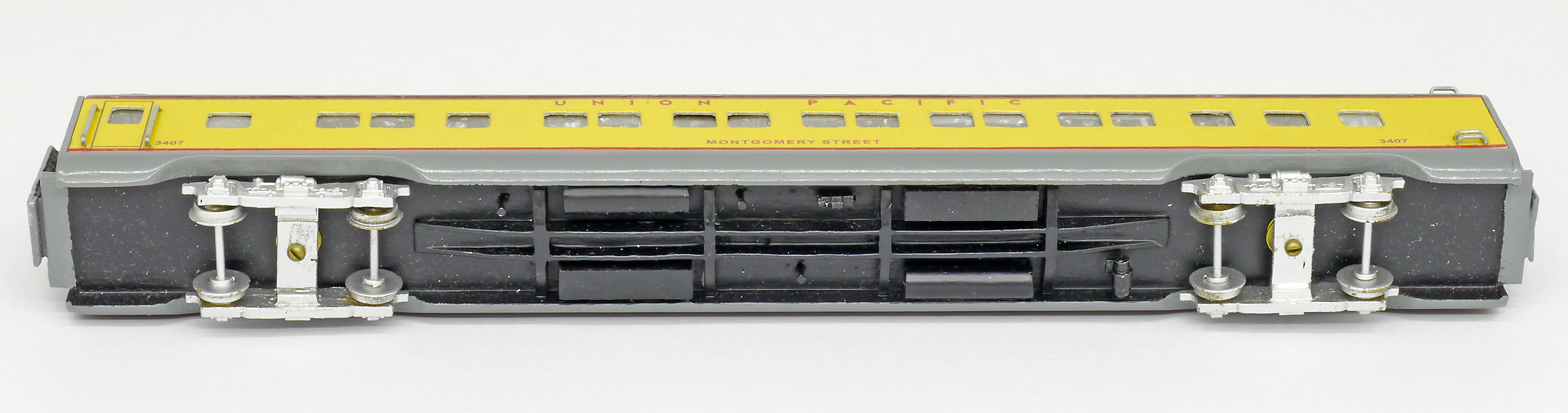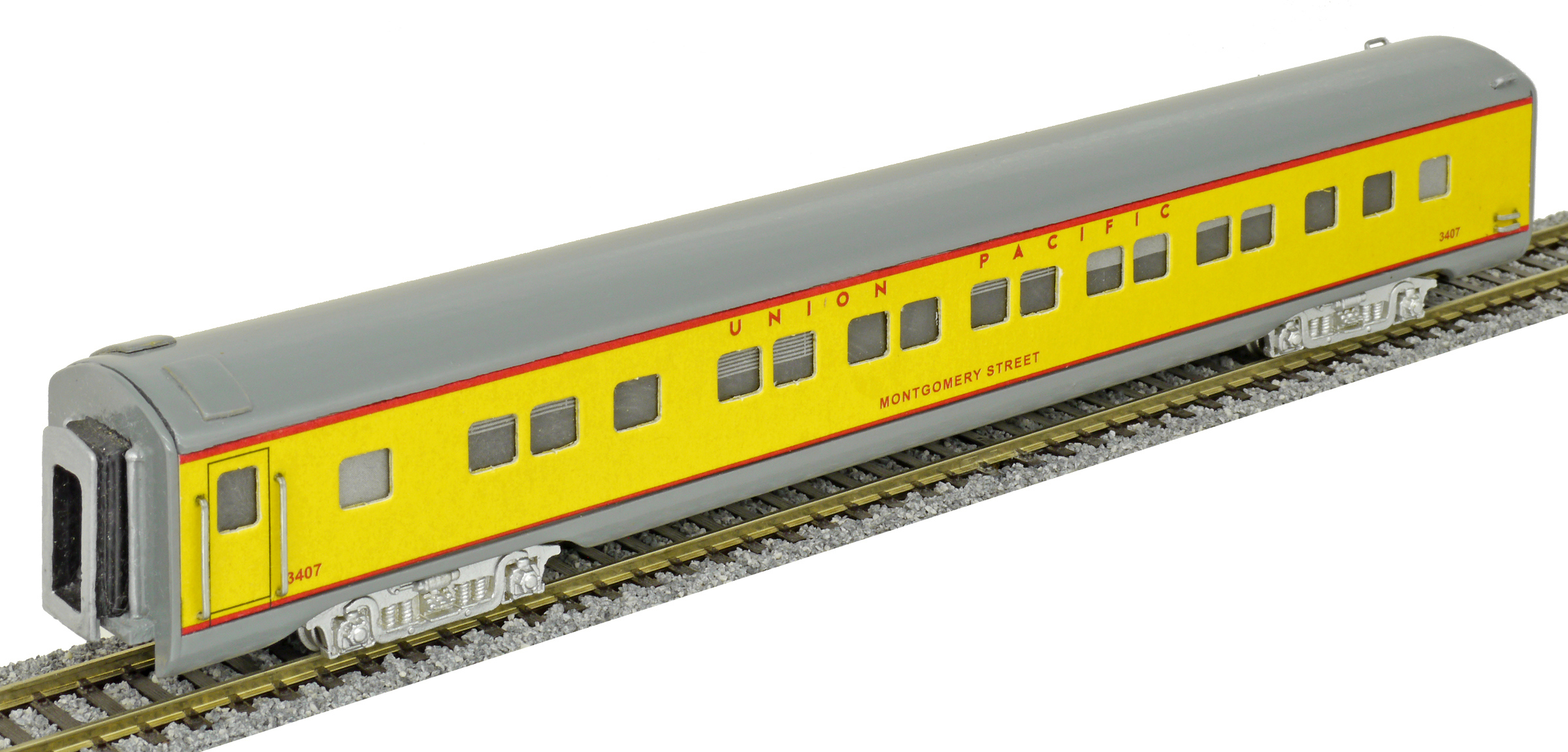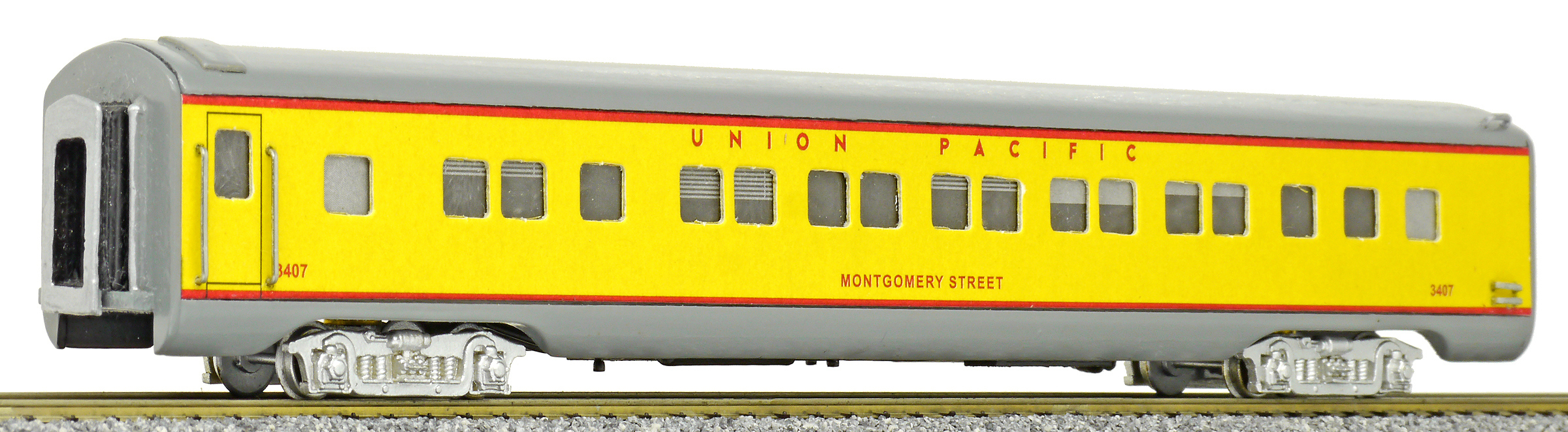 | americký rychlíkový vůz pro dálkovou přepravu žlutý s šedou střechou |