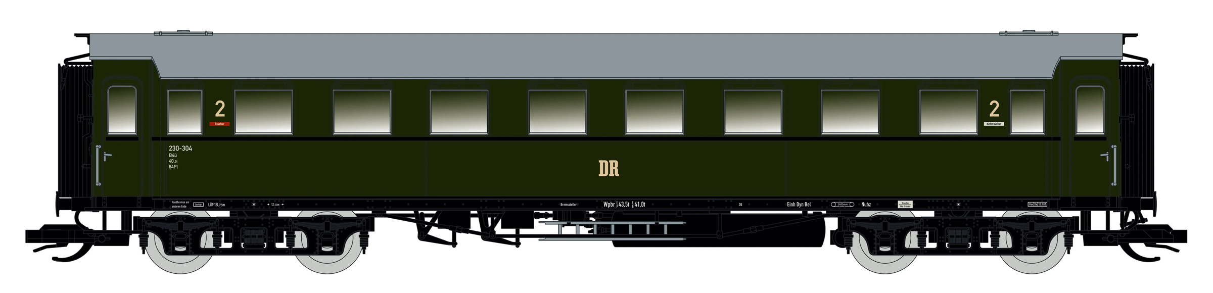 oddílový osobní vůz zelený s šedou střechou 2. tř.
