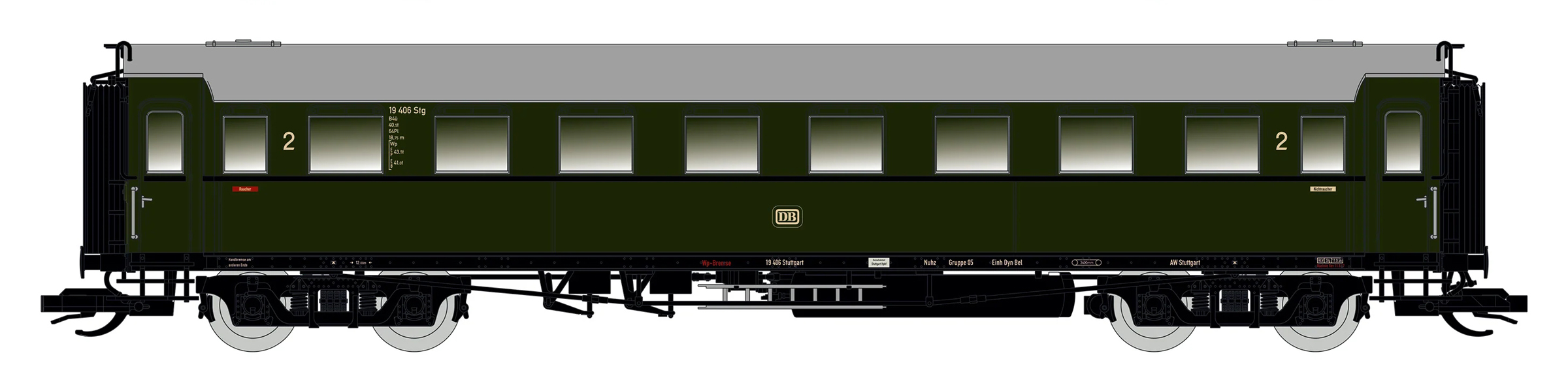 | oddílový osobní vůz zelený s šedou střechou 2. tř. |