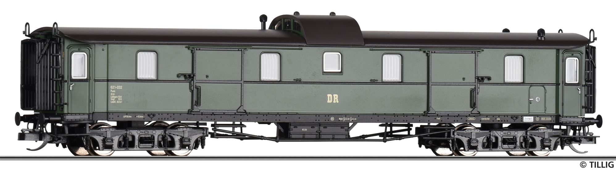 | zavazadlový vůz zelený s tmavě hnědou střechou |