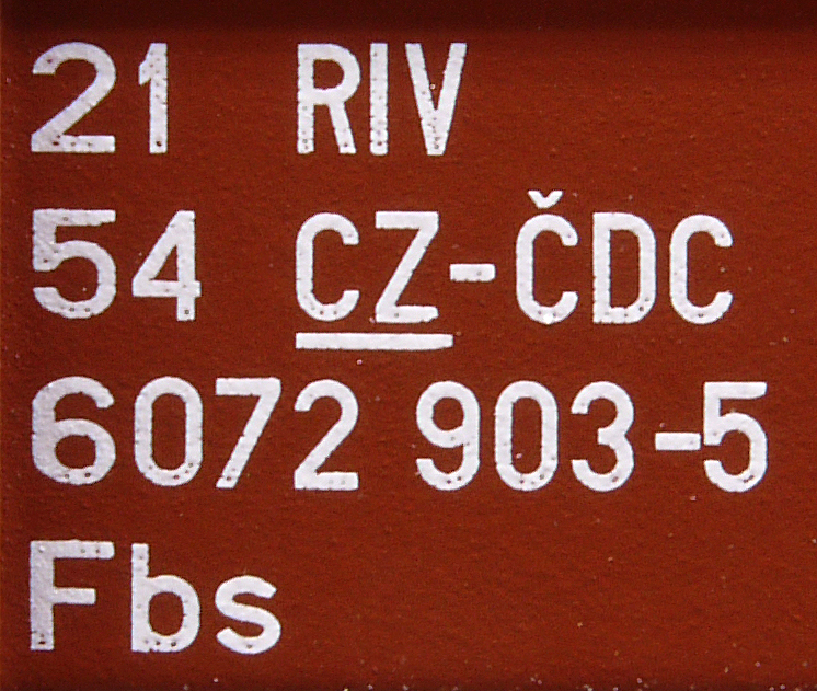 | • 21 54 6072 903-5 | → | nákladní, nezávislé nápravy, pevný rozchod, ve vlastnictví železniční správy, RIV, PPV |