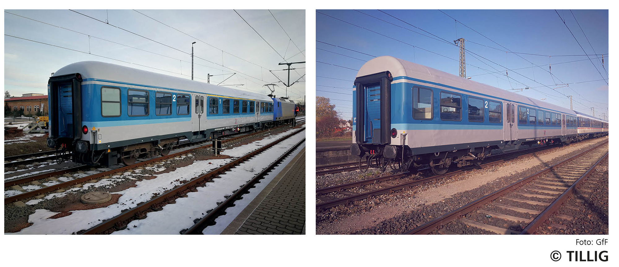 | set dvou rychlíkových vozů 2. tř. v barevném schematu „Gesellschaft für Fahrzeugtechnik“ |