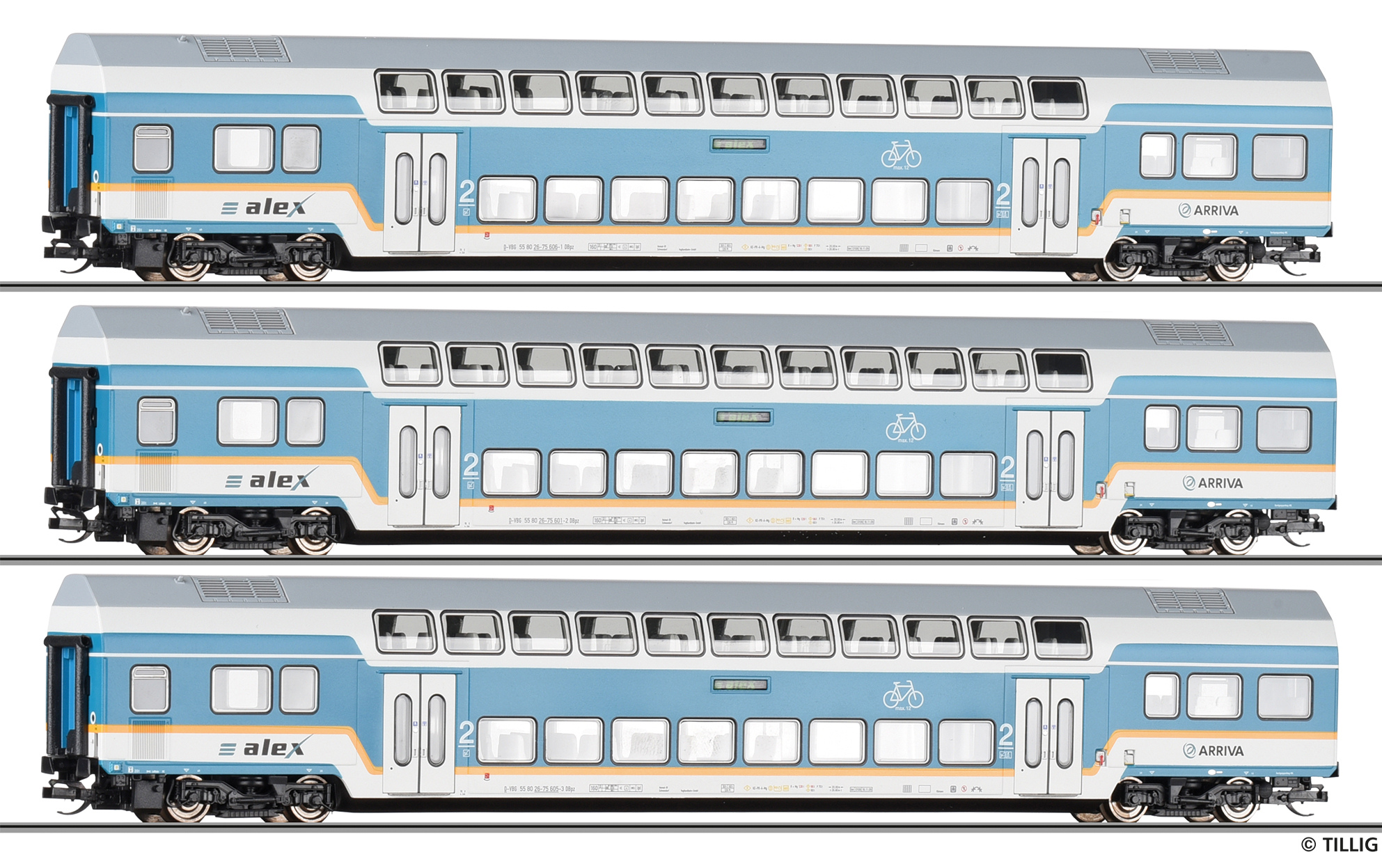 | set tří patrových vozů v barevném schematu „alex“, SET 1 |