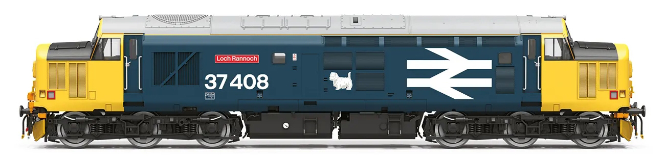 | dieselová lokomotiva modrá-žlutá s šedou střechou „Loch Rannoch“ |