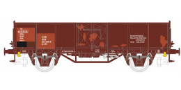 | otevřený nákladní vůz červenohnědý s opravami laku ložený šrotem |