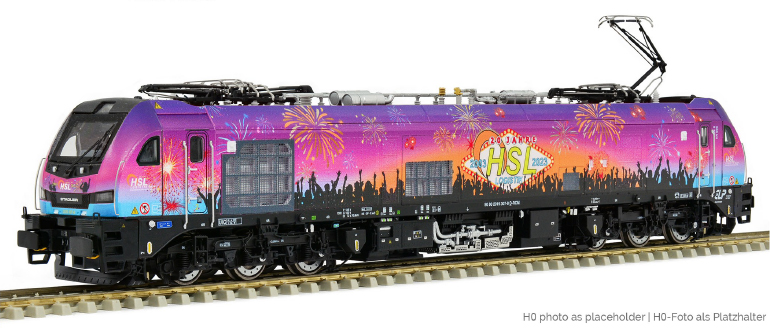 | Stadler Dual-Mode lokomotiva s reklamním potiskem „20 Jahre HSL Logistik“ |