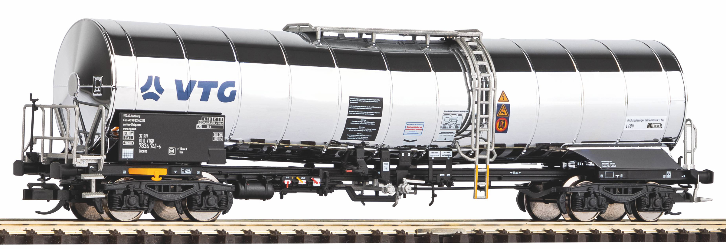 | kotlový vůz bílý-černý na přepravu chemikálií s logem „VTG“ |