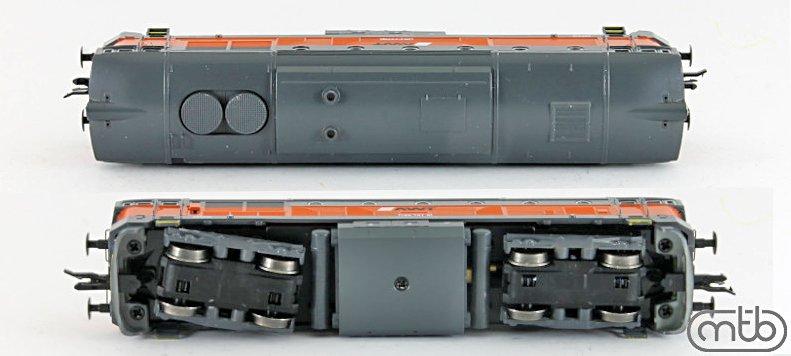 měřítko 1:120 - rozchod kolejí 12 mm osvětlení - 3 reflektory vpředu, 2 světla vzadu, přepínatelné podle směru jízdy 4 hnané nápravy 0 bandážovaných náprav kinematika krátkého spřáhla (KKK) podle normy NEM 358 digitální rozhraní podle NEM 658 s konektorem PluX16 setrvačník 137 mm - celková délka modelu přes nárazníky 4 - celkový počet náprav nebo rozložení náprav