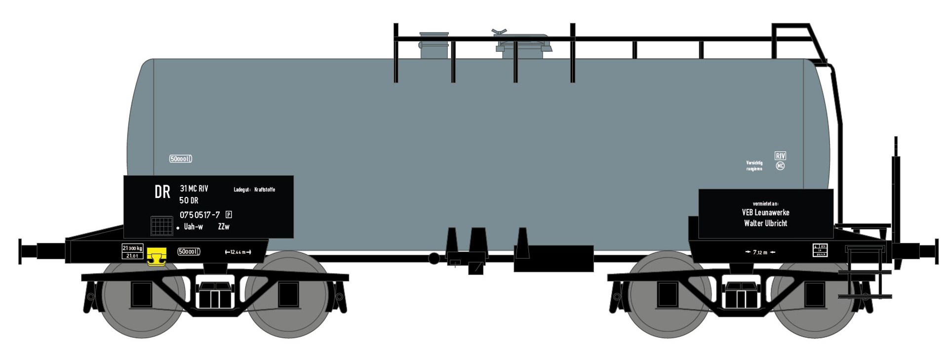 | kotlový vůz šedý (RAL 7000) „VEB Leuna Walter Ulbricht“ |