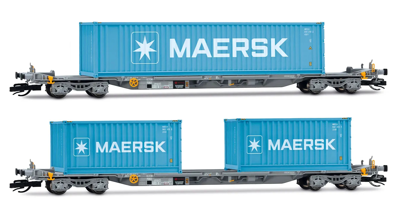 | set dvou kontejnerových vozů „IFA” ložených 1x 40' a 2x 20' kontejnery „MAERSK” |