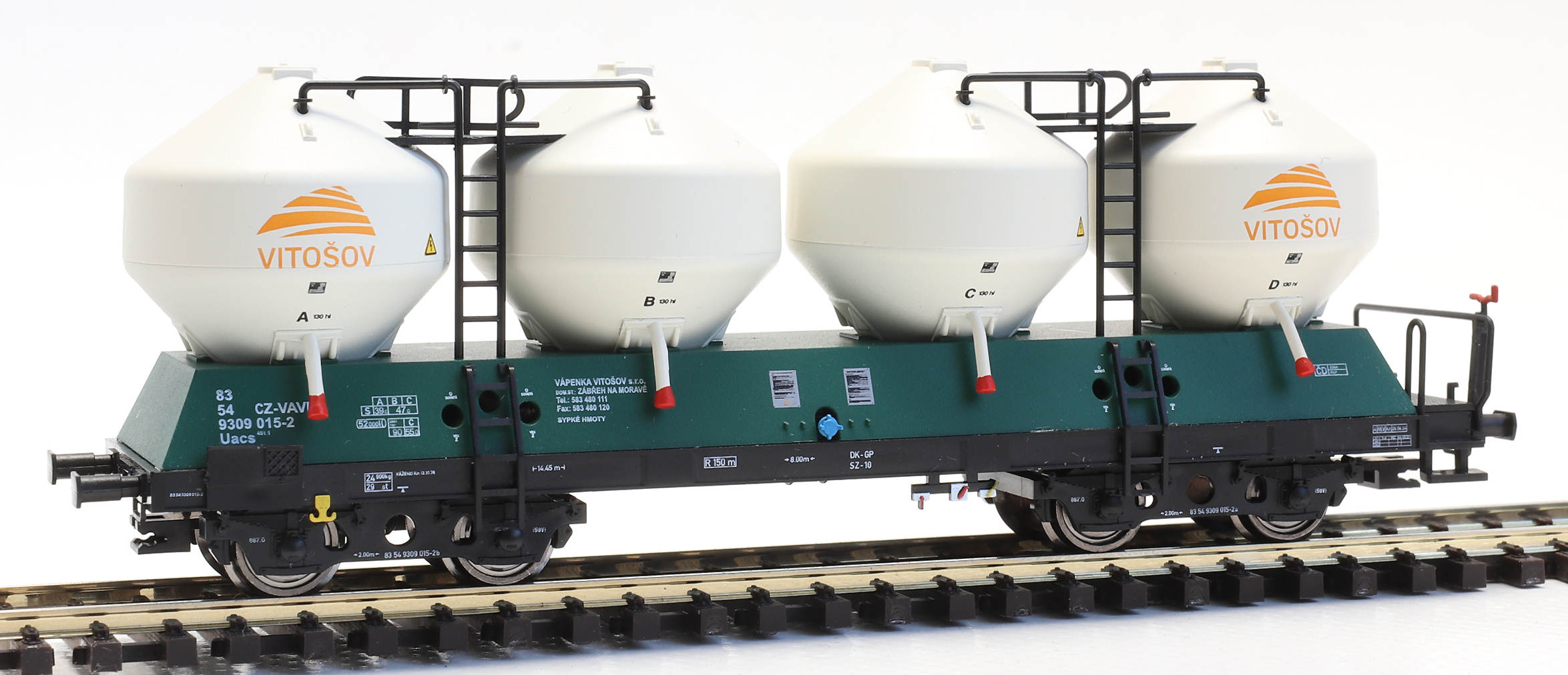 měřítko 1:120 - rozchod kolejí 12 mm kinematika krátkého spřáhla (KKK) podle normy NEM 358 130 mm - celková délka modelu přes nárazníky 4 - celkový počet náprav nebo rozložení náprav