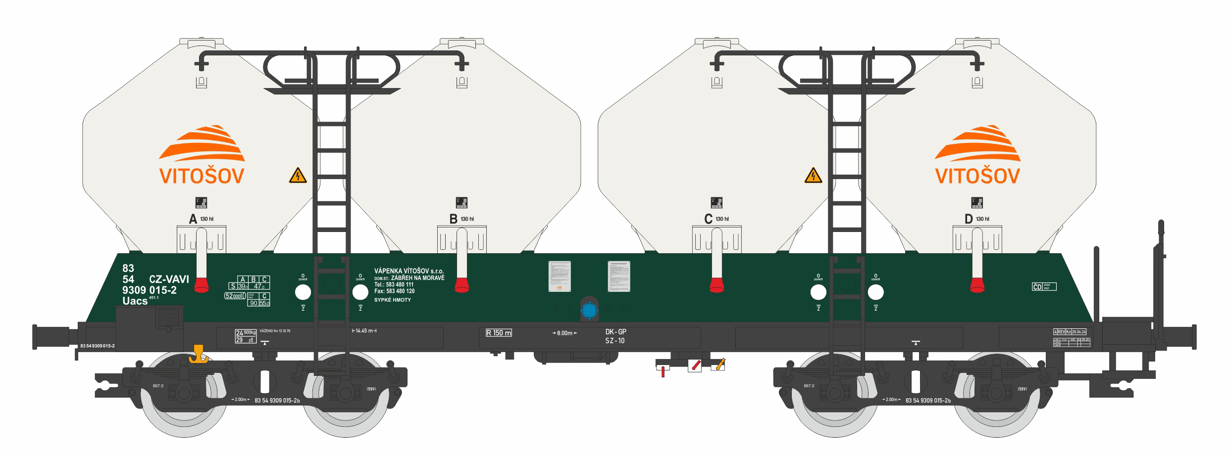 | • 83 54 9309 015-2 | → | nákladní, s podvozky, soukromý vůz, pro mezinárodní dopravu dle zvláštních úmluv |