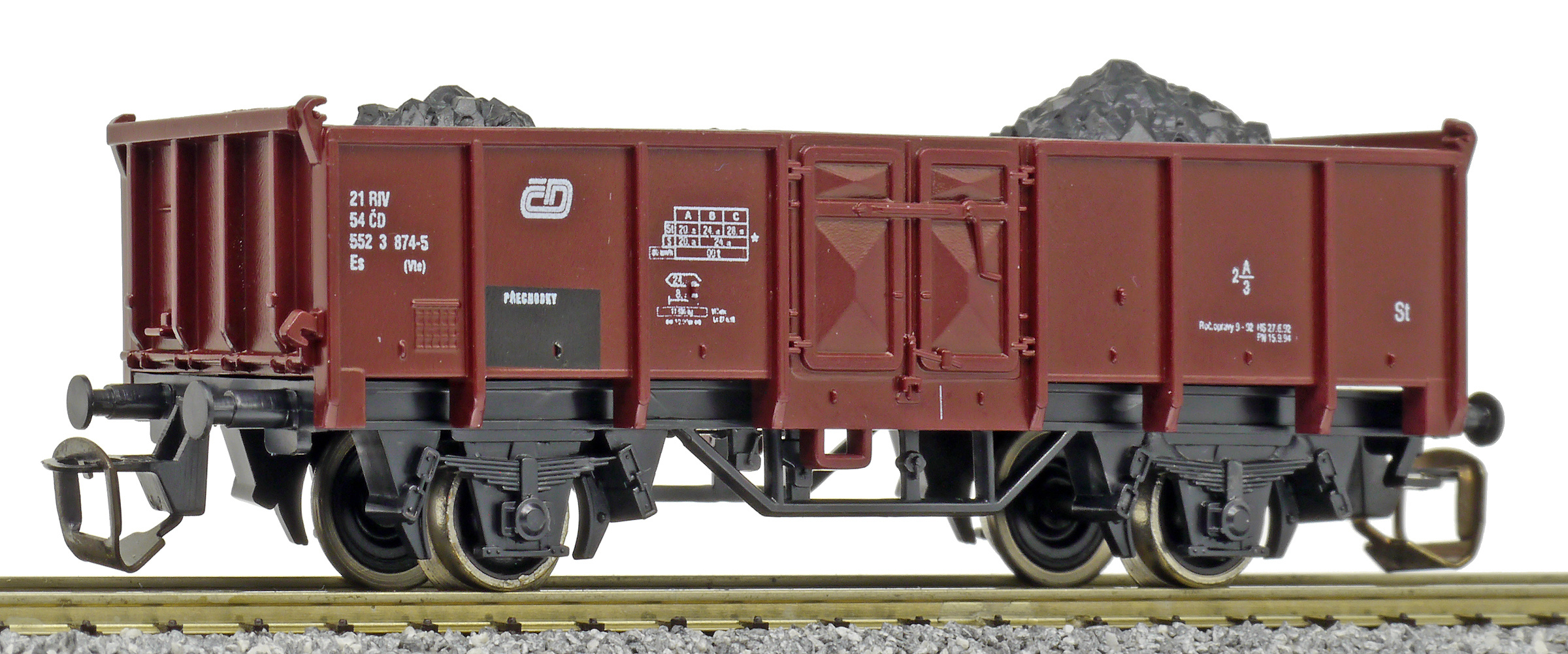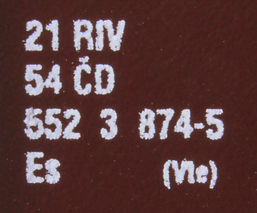 | • 21 54 552 3 874-5 | → | nákladní, nezávislé nápravy, pevný rozchod, ve vlastnictví železniční správy, RIV, PPV |