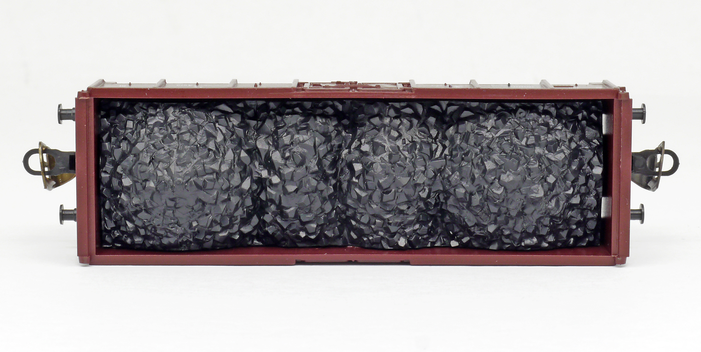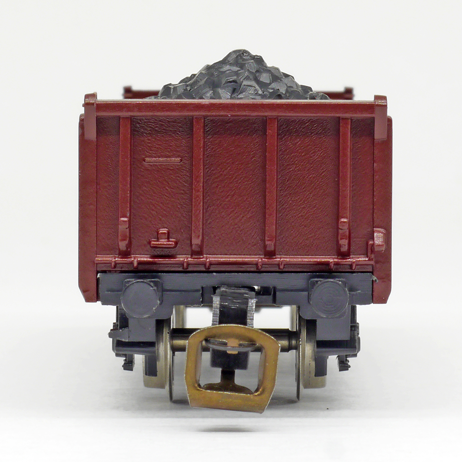 | otevřený nákladní vůz červenohnědý ložený uhlím |