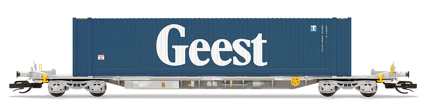| kontejnerový vůz „IFA” šedý ložený 45' kontejnerem „GEEST” |