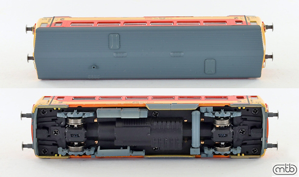 měřítko 1:120 - rozchod kolejí 12 mm osvětlení - 3 reflektory vpředu, 2 světla vzadu, přepínatelné podle směru jízdy 2 hnané nápravy 0 bandážovaných náprav vnitřní interiér vozu instalováno osvětlení interiéru kinematika krátkého spřáhla (KKK) podle normy NEM 358 digitální rozhraní podle NEM 662 s konektorem Next18 116 mm - celková délka modelu přes nárazníky 2 - celkový počet náprav nebo rozložení náprav