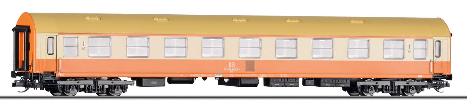 | rychlíkový vůz v barevném schematu „Städteexpress“ 1. tř. |