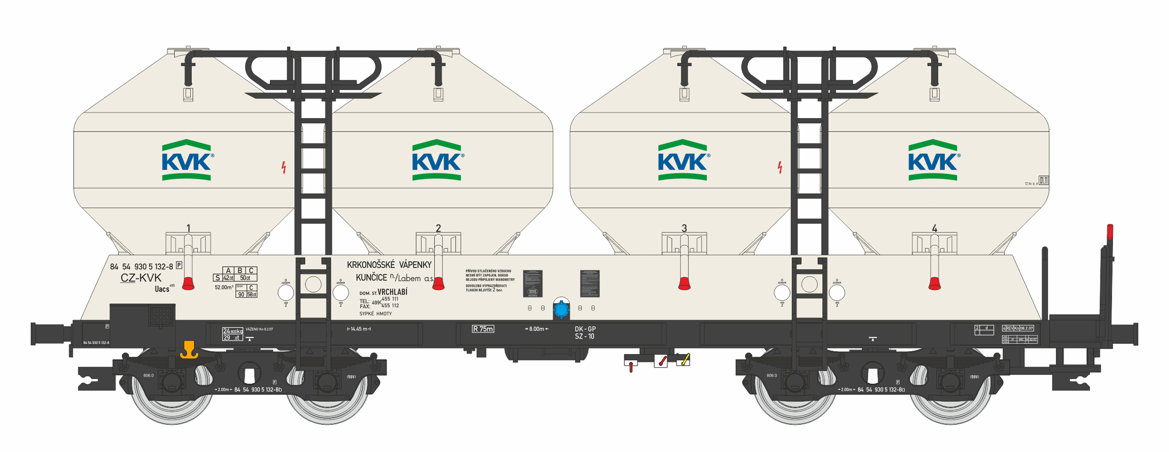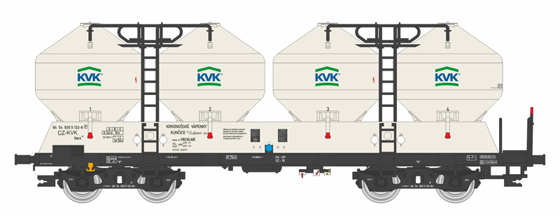 | nákladní samovýsypný vůz krémový s krémovými nádobami „KVK“ |