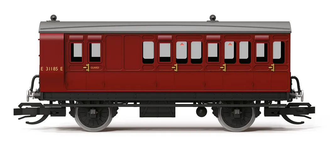 | osobní vůz tmavě červený se světle šedou střechou „Third Class Brake Coach“ |