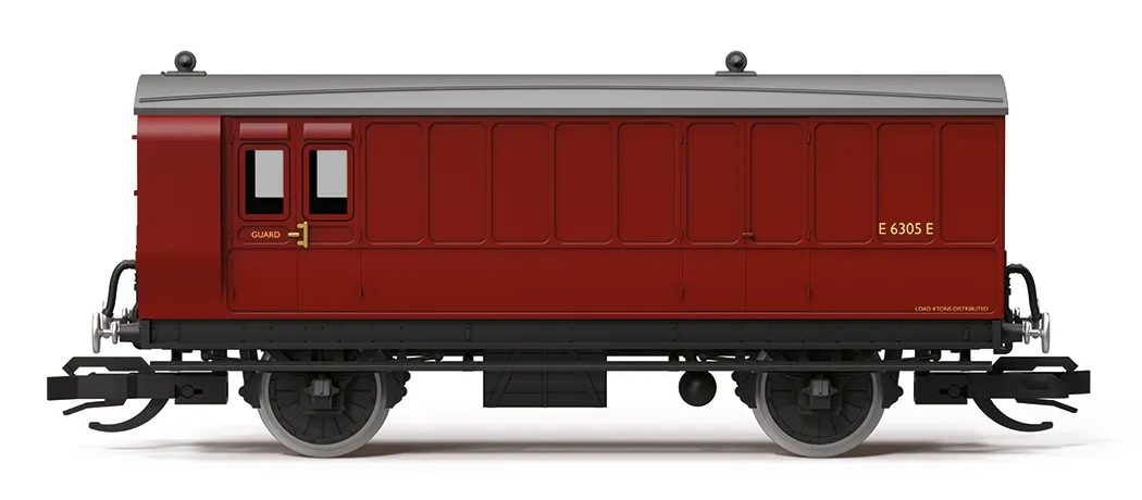 | osobní vůz tmavě červený se světle šedou střechou „Passenger Brake Coach“ |