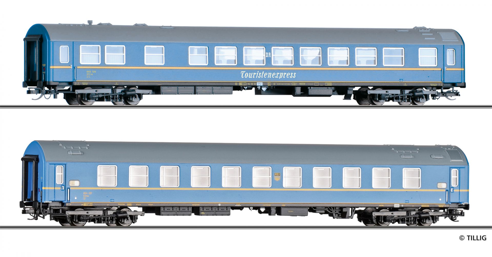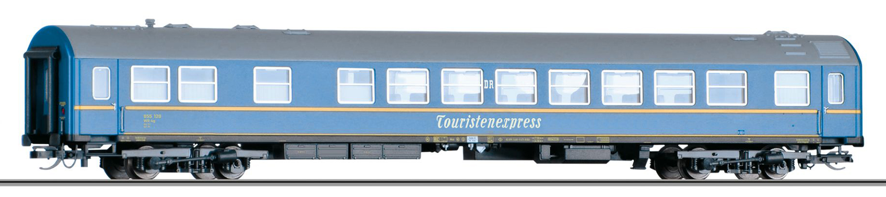 | lůžkový vůz modrý s šedou střechou „Tourex“ |