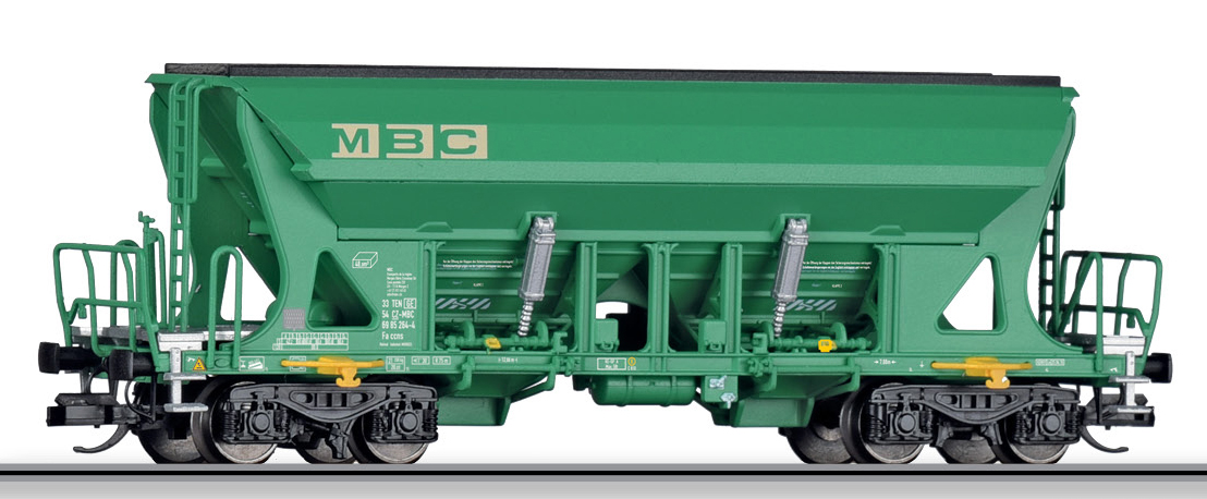 | nákladní samovýsypný vůz zelený s logem „MBC“ |