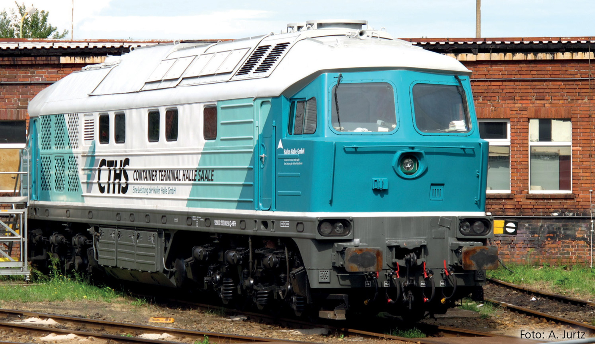 | dieselová lokomotiva v barevném schematu „Container Terminal Halle“ |