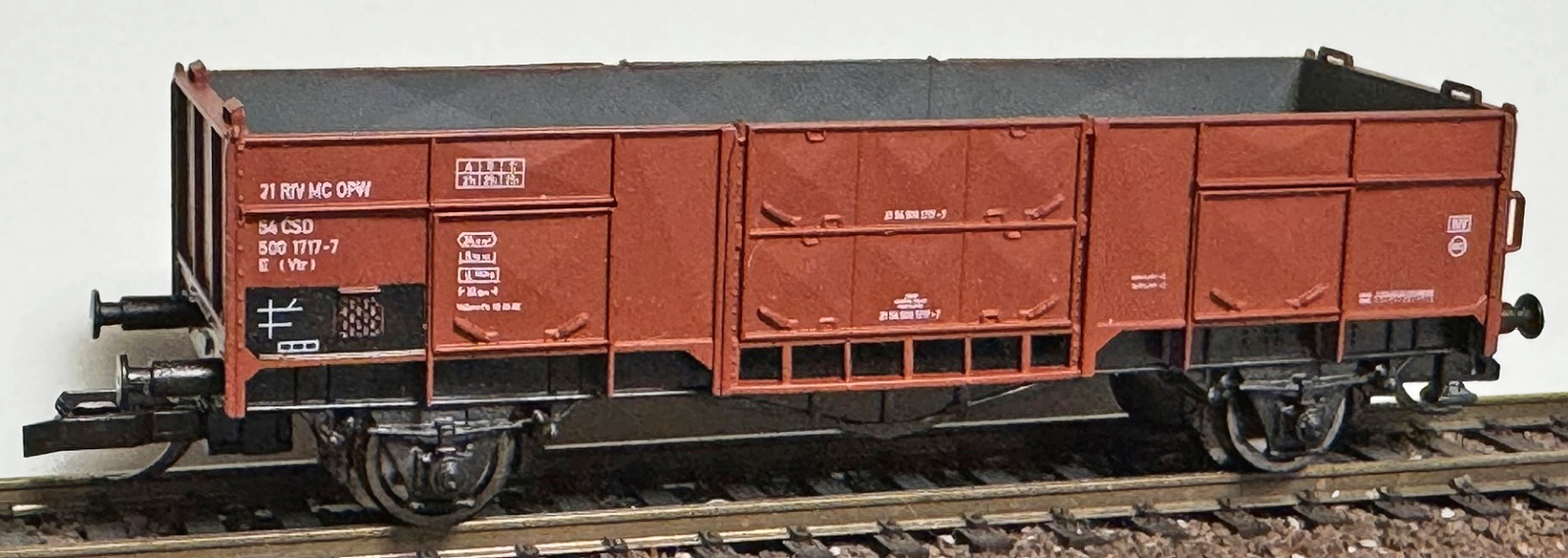 | • 21 54 500 1717-7 | → | nákladní, nezávislé nápravy, pevný rozchod, ve vlastnictví železniční správy, RIV, PPV |