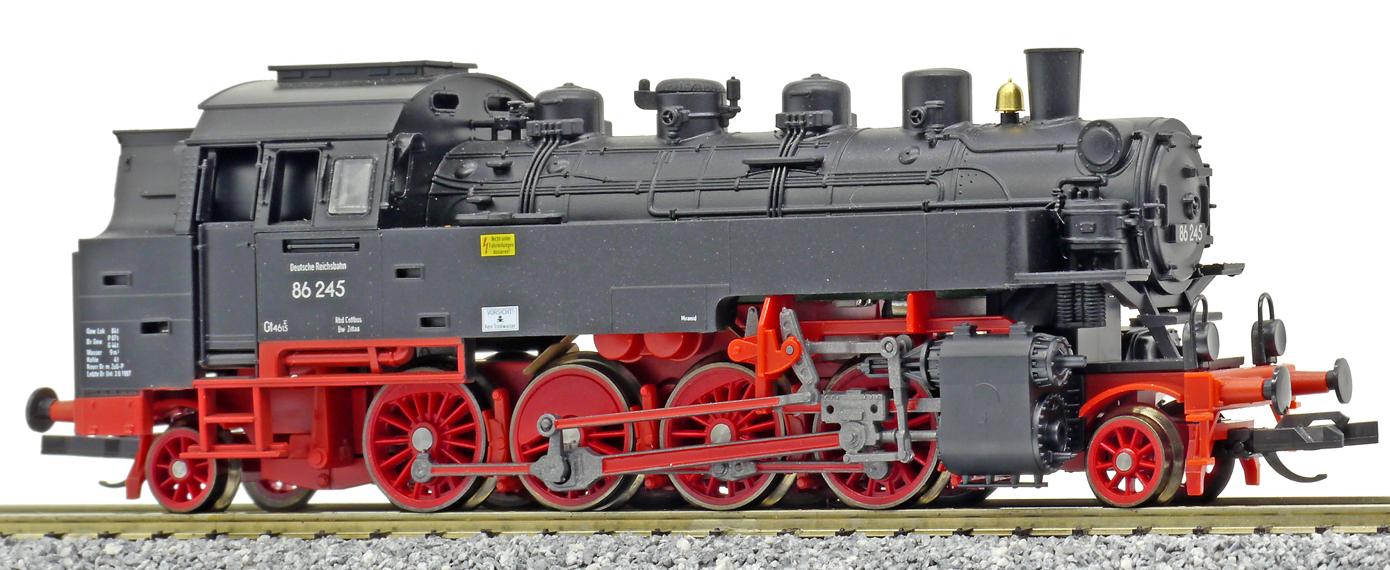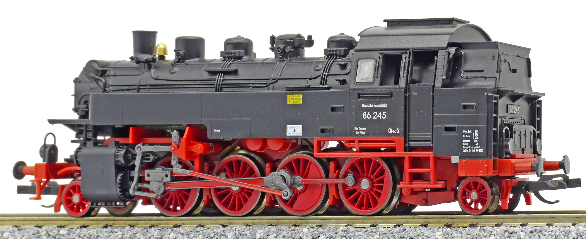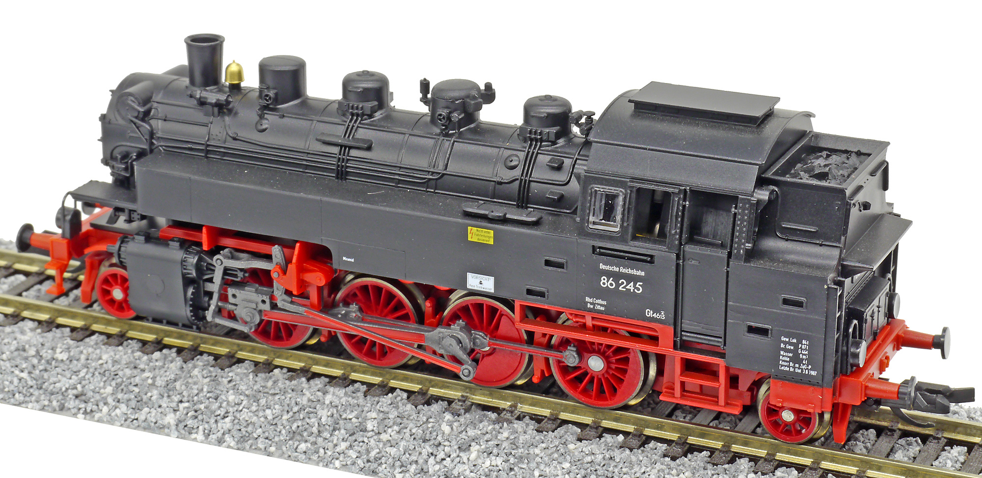Kód   02245  [Lokomotivy] → [Parní] → [BR 86] → 02245: parní lokomotiva černá s červeným pojezdem