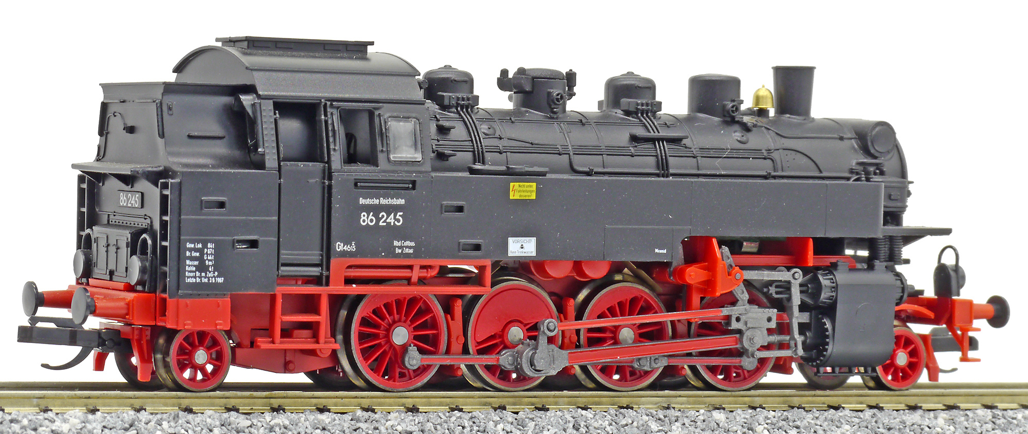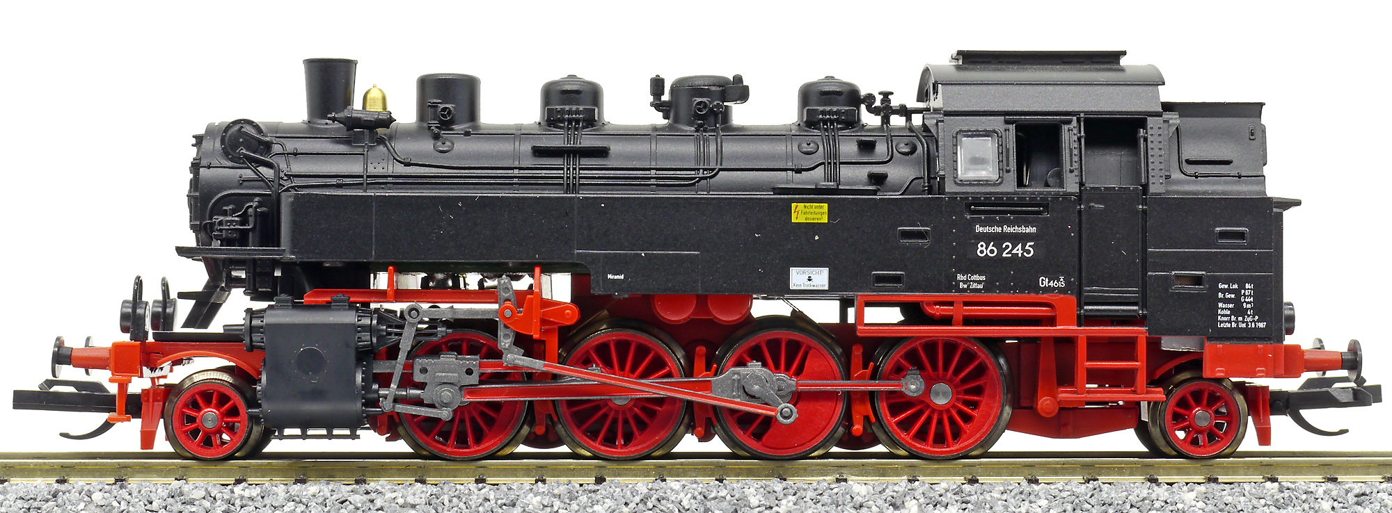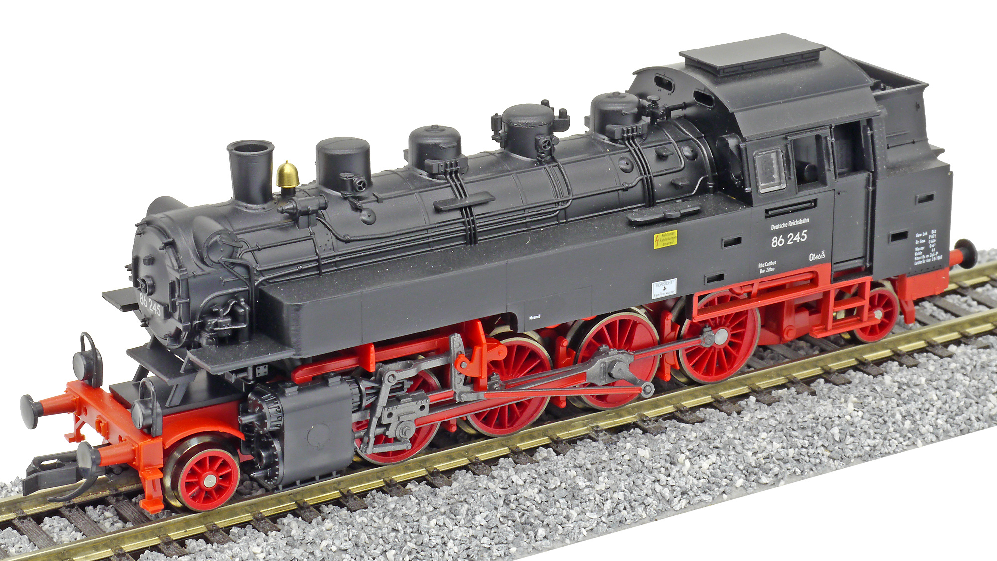 Kód   02245  [Lokomotivy] → [Parní] → [BR 86] → 02245: parní lokomotiva černá s červeným pojezdem