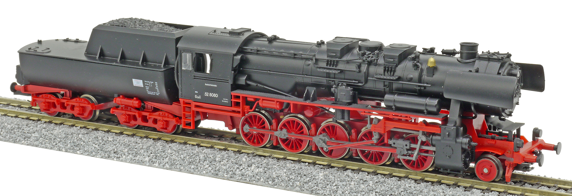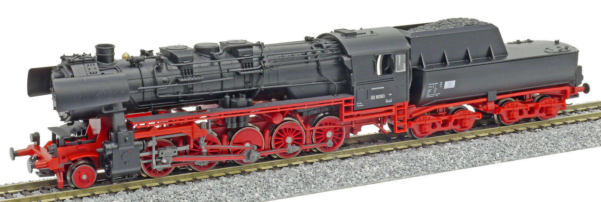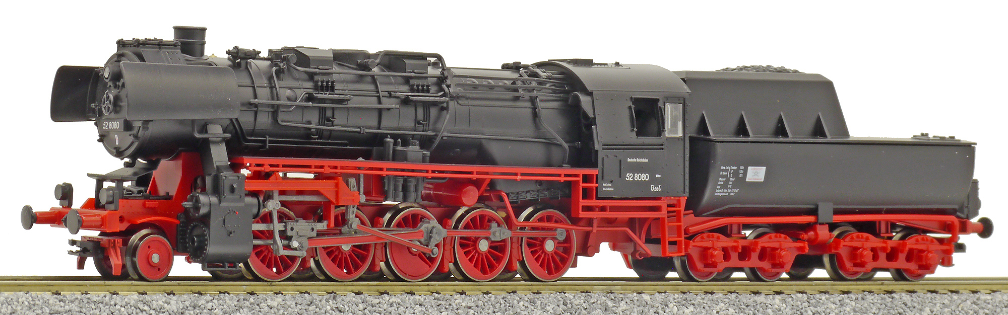 Kód   125209  [Lokomotivy] → [Parní] → [BR 52] → 125209: černá s červeným pojezdem
