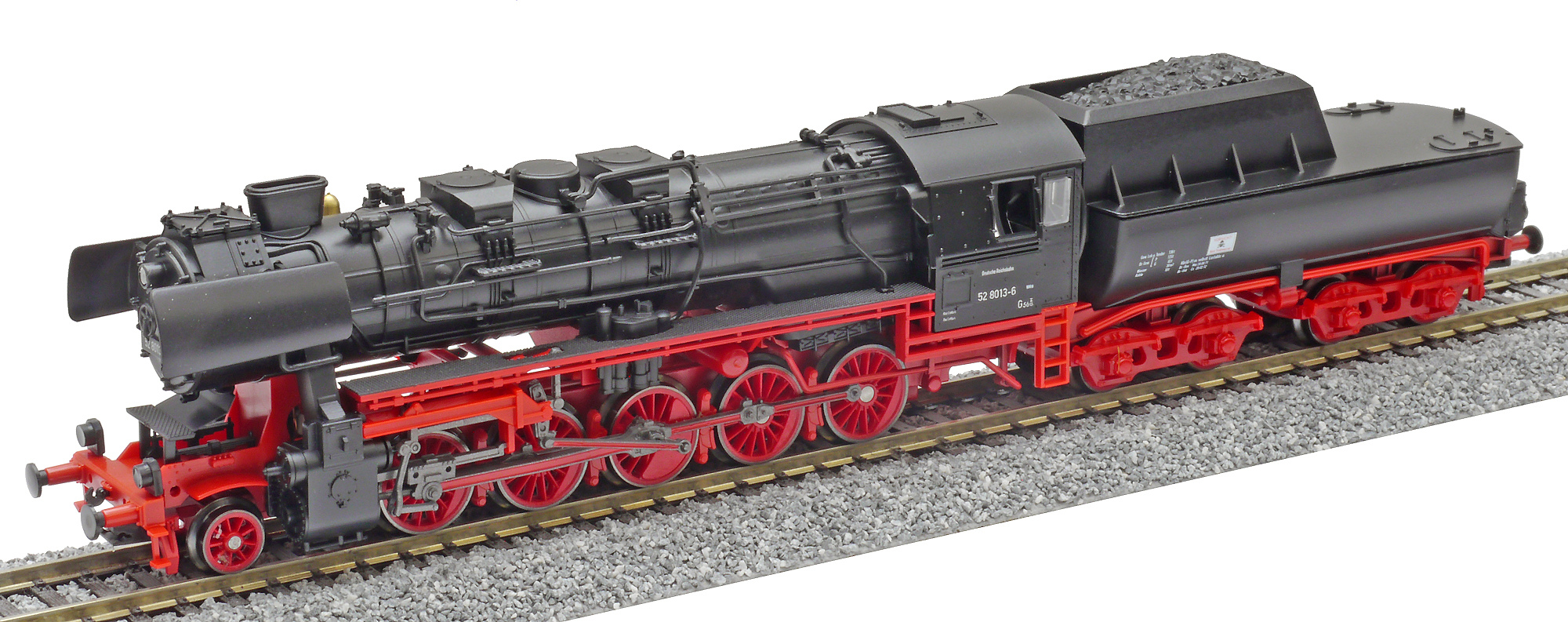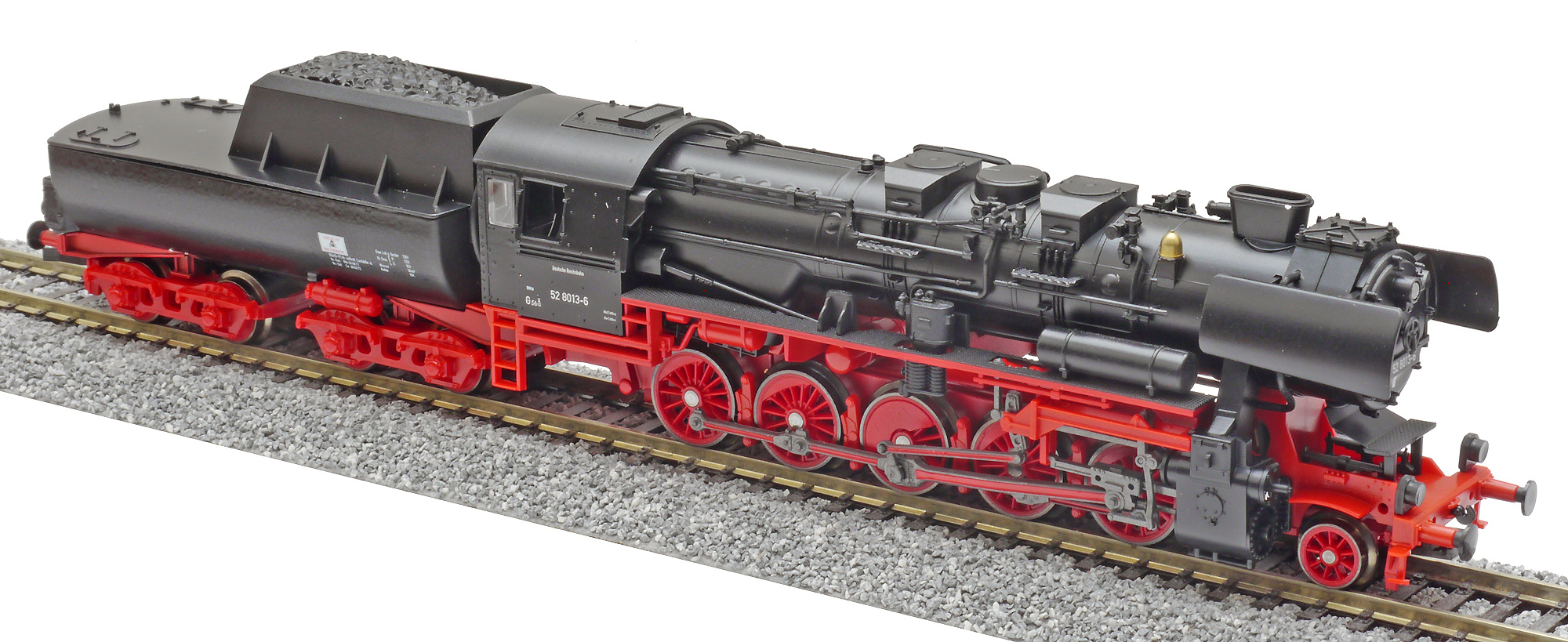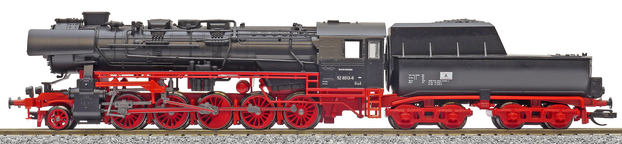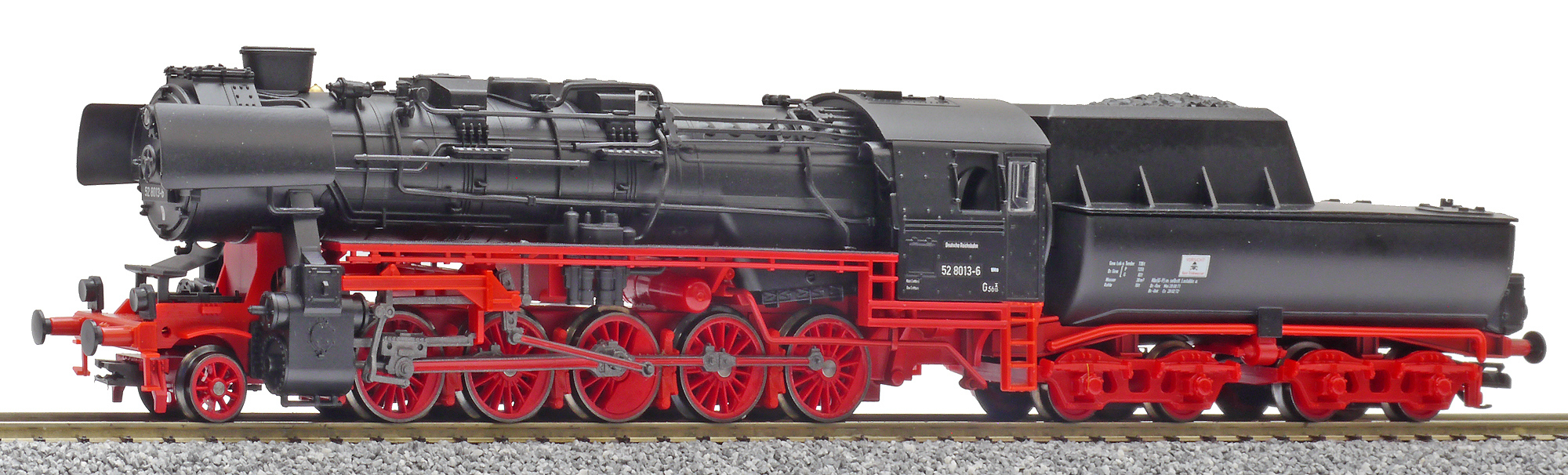 Kód   02274  [Lokomotivy] → [Parní] → [BR 52] → 02274: černá s červeným pojezdem a kouřovými plechy