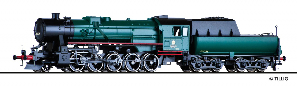 Kód   02285  [Lokomotivy] → [Parní] → [BR 52] → 02285: černá s kouřovými plechy a s červenými koly