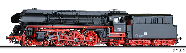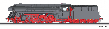 Kód   1018203  [Lokomotivy] → [Parní] → [BR 01] → 1018203: černá s červeným pojezdem, kouřovými plechy a olejovým tendrem BR 01.5