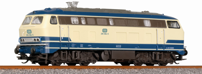 Kód   02716  [Lokomotivy] → [Motorové] → [BR 218] → 02716: dieselová lokomotiva modrá-slonová kost, šedá střecha, hnědý pojezd