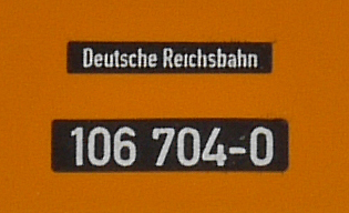 Kód   96326 E  [Lokomotivy] → [Motorové] → [V 60] → 96326 E: dieselová lokomotiva oranžová, černý rám s potiskem motivu „Bahnbetriebswerk Kamenz“