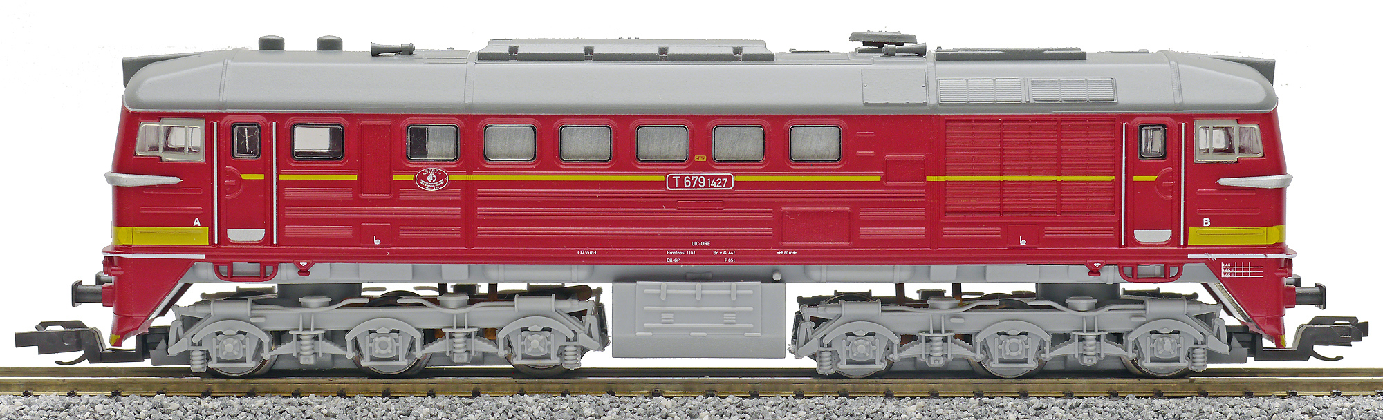 měřítko 1:120 - rozchod kolejí 12 mm osvětlení - 3 reflektory přepínatelné podle směru jízdy osvětlení - žárovky 4 hnané nápravy 2 bandážované nápravy nenormované uchycení spřáhla digitální rozhraní podle NEM 651 s konektorem 6pin 147 mm - celková délka modelu přes nárazníky 6 - celkový počet náprav nebo rozložení náprav 235 g - hmotnost brutto - model včetně prodejního obalu 200 g - hmotnost netto - pouze model