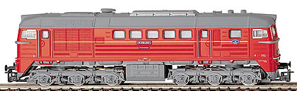 Popis   dieselová lokomotiva červená s šedou střechou a pojezdem