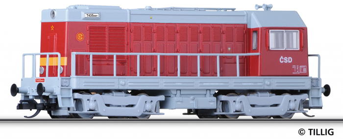 Popis   dieselová lokomotiva červená s šedou střechou, rámem a pojezdem