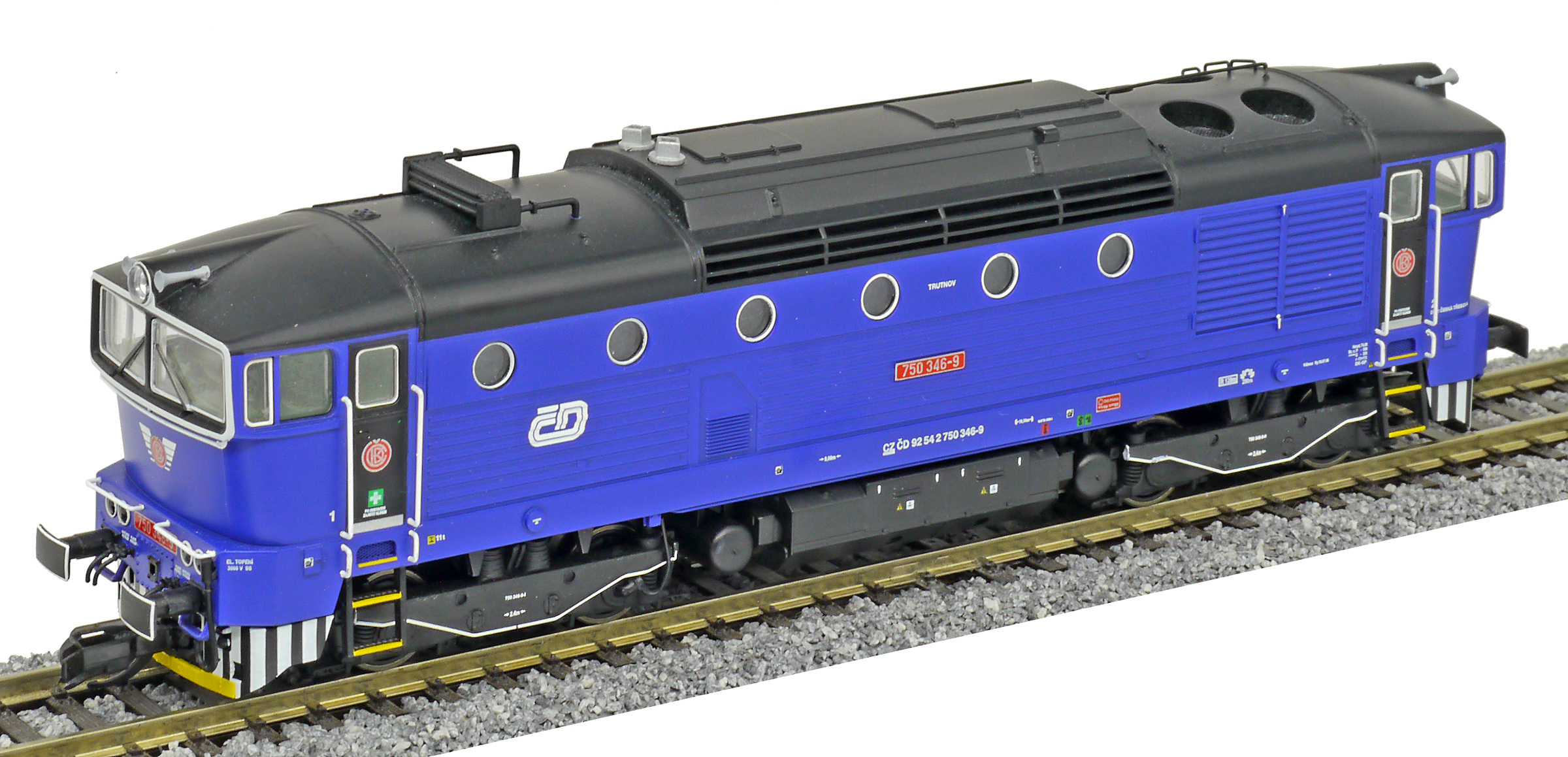 Kód   TT750-346  [Lokomotivy] → [Motorové] → [T478.3 „Brejlovec”] → TT750-346: dieselová lokomotiva tmavě modrá, černá střecha a podvozky