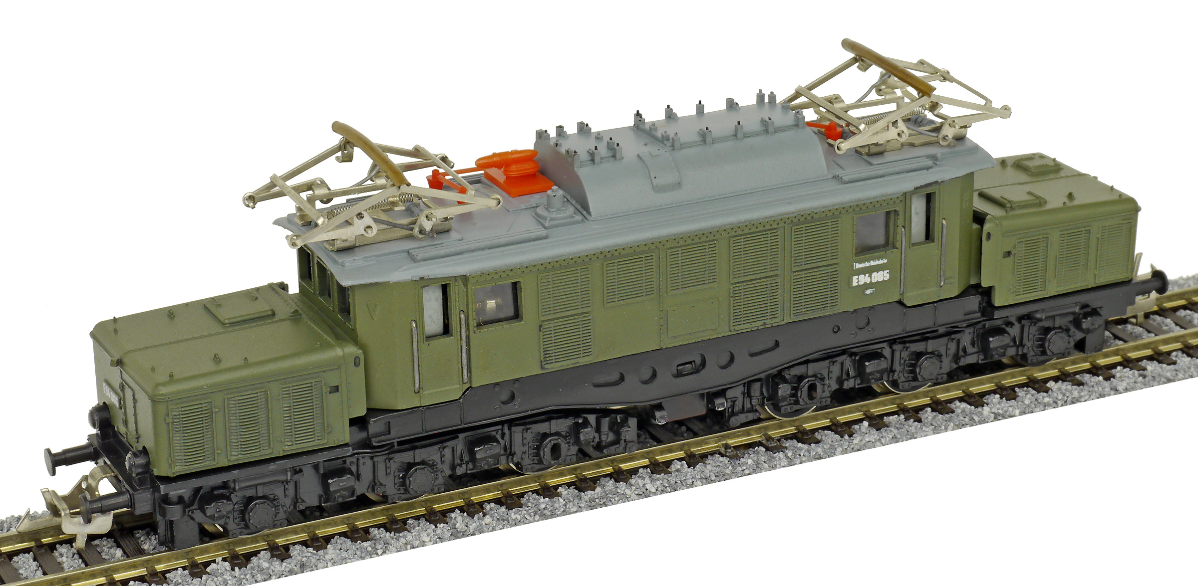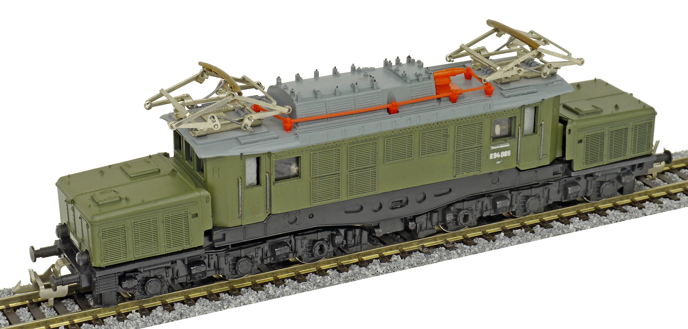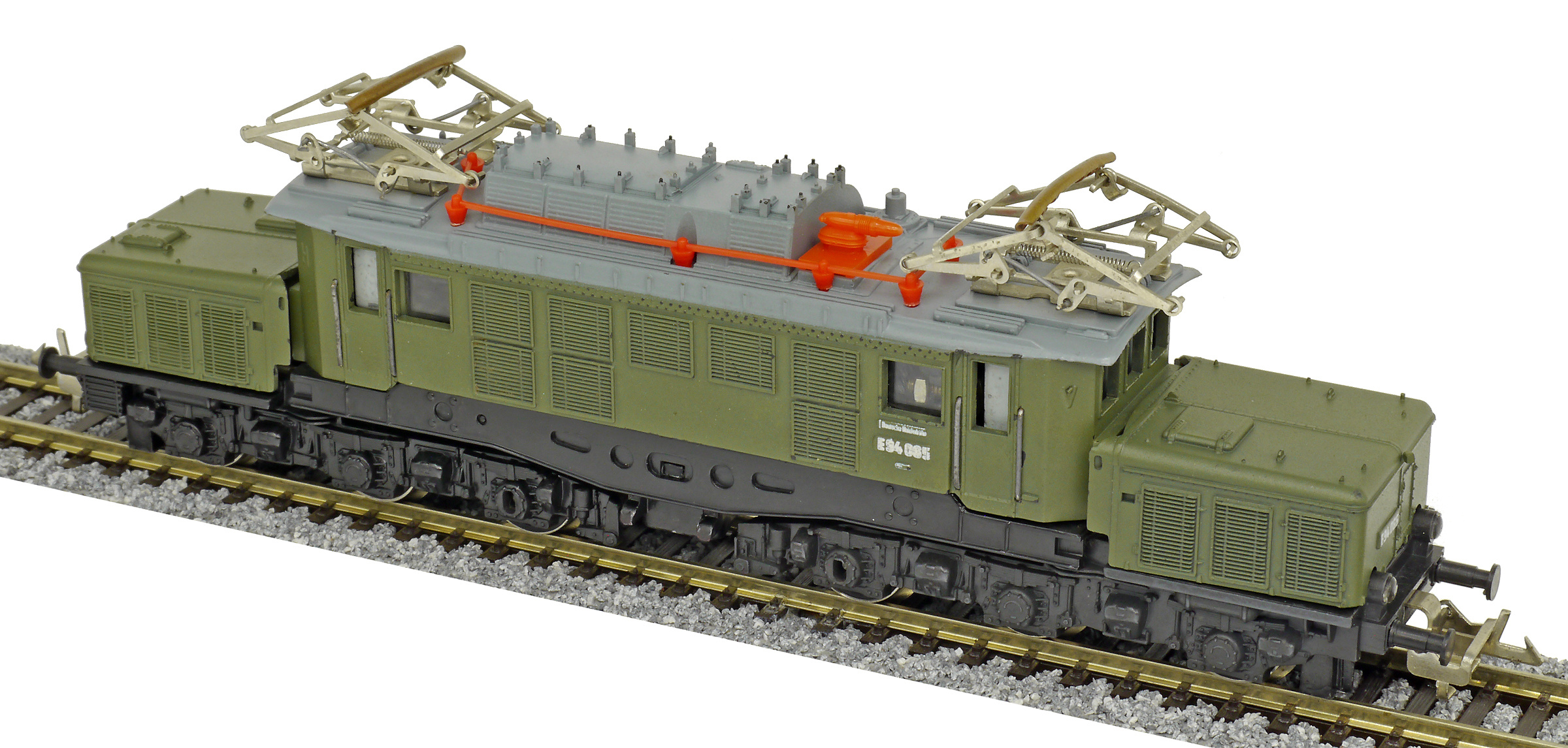 Kód   502793  [Lokomotivy] → [Elektrické] → [BR 194] → 502793: elektrická lokomotiva zelená s šedou střechou a červenými podvozky, červené pantografy