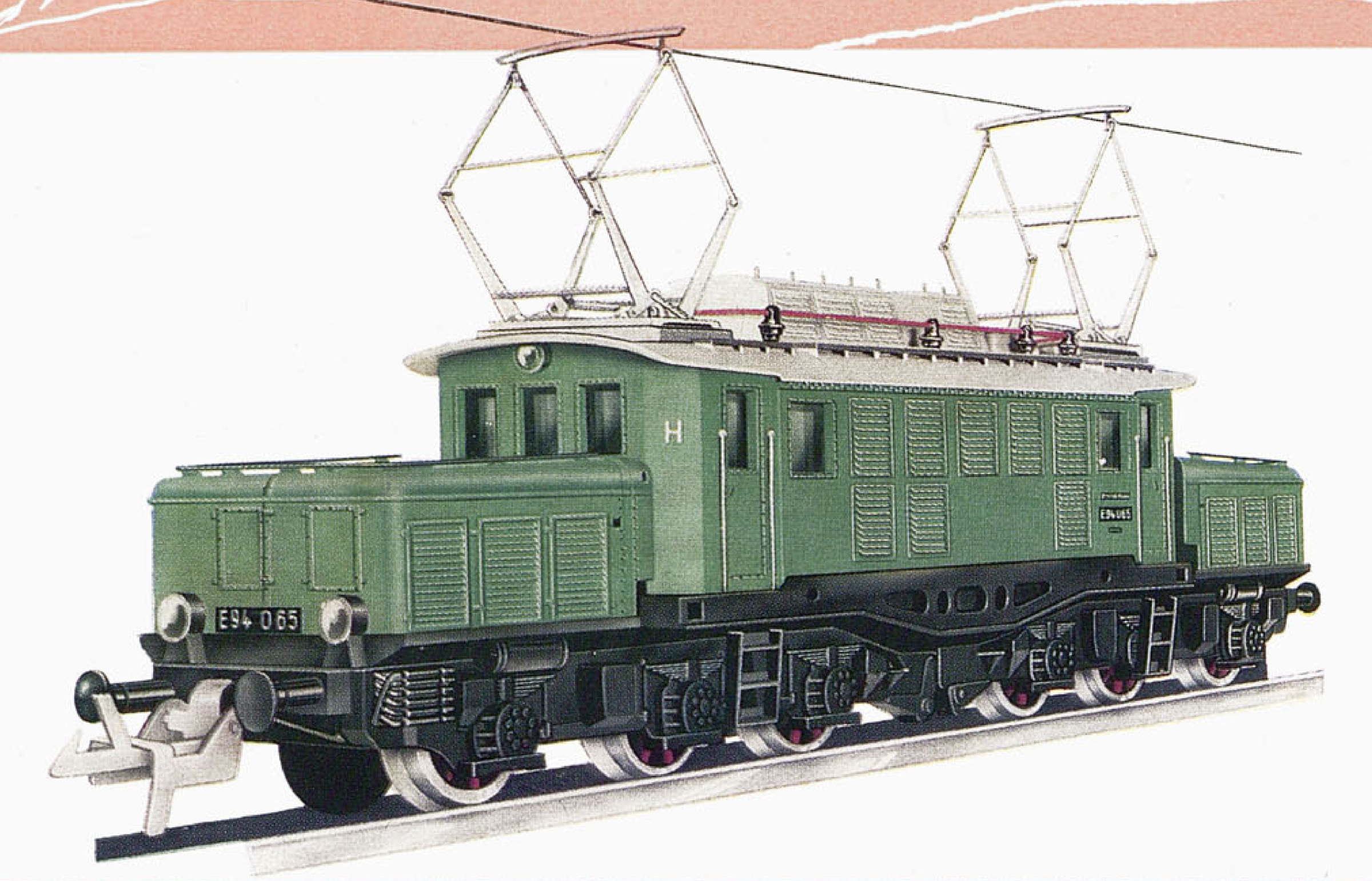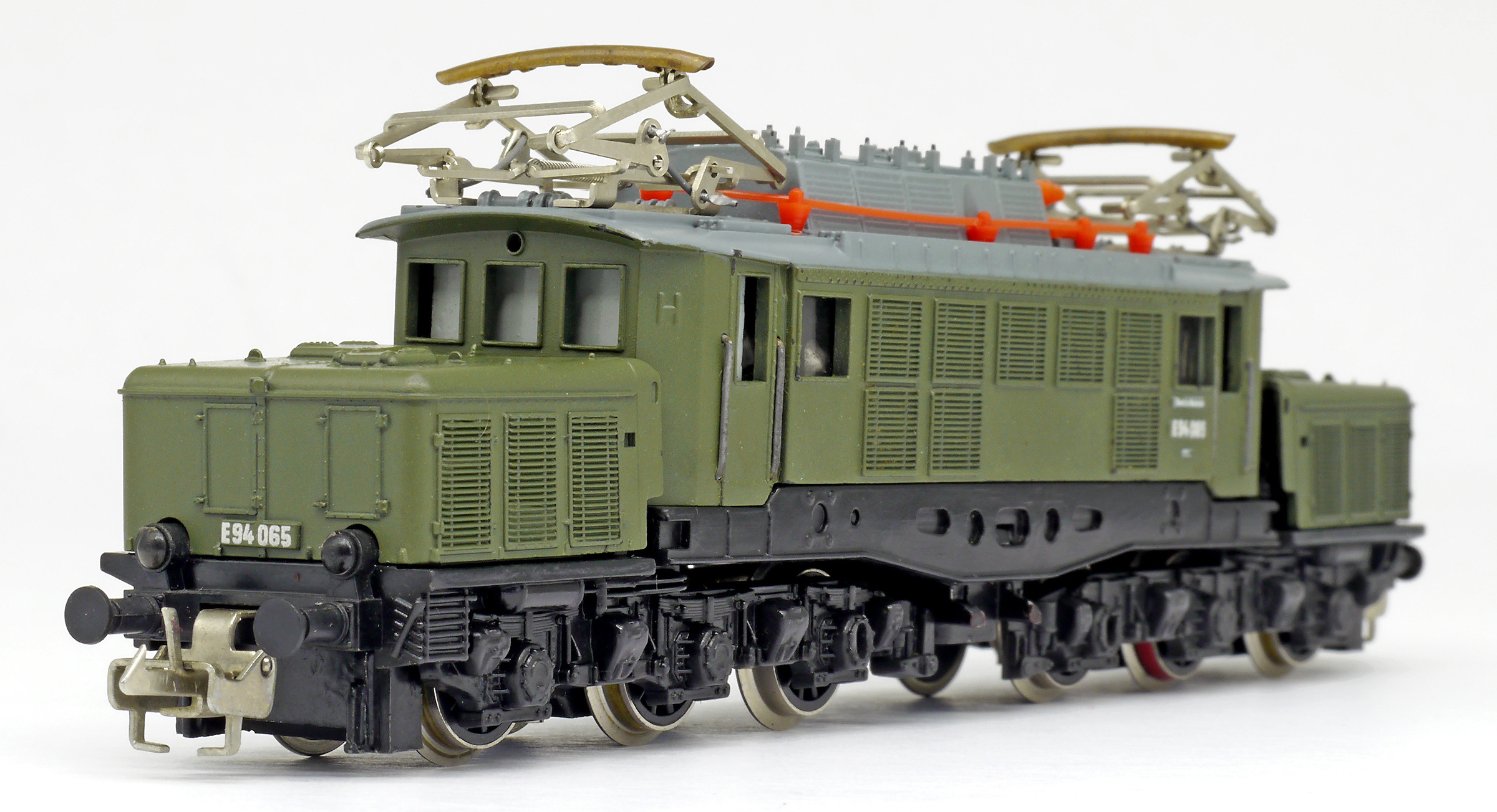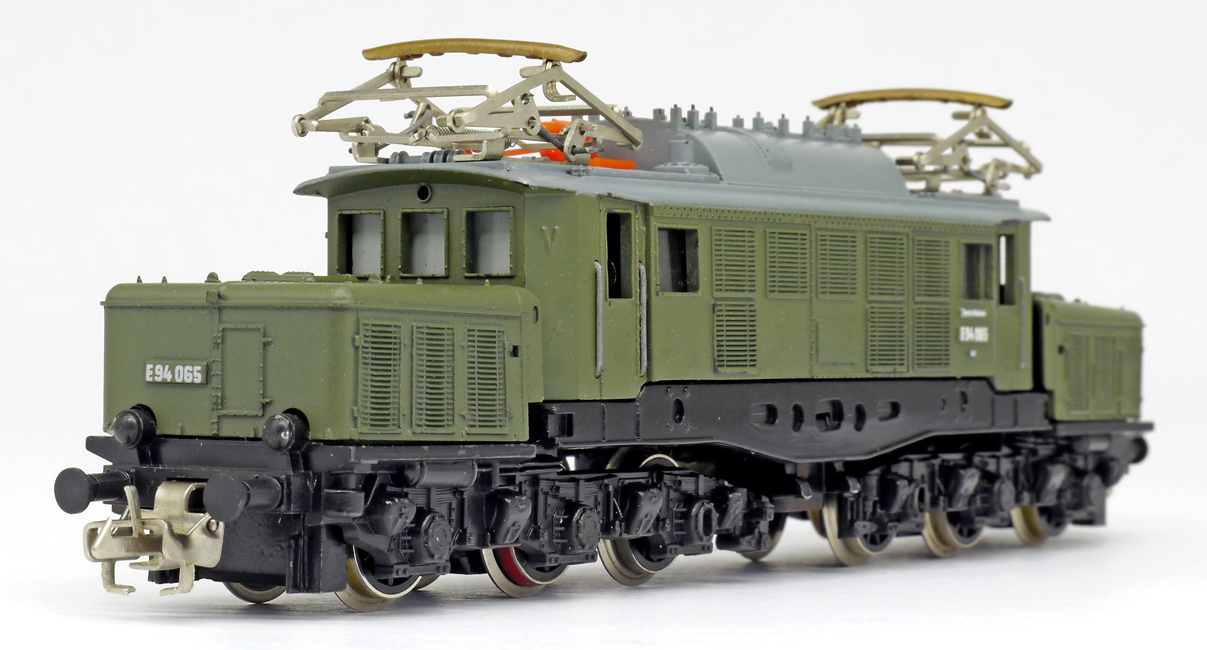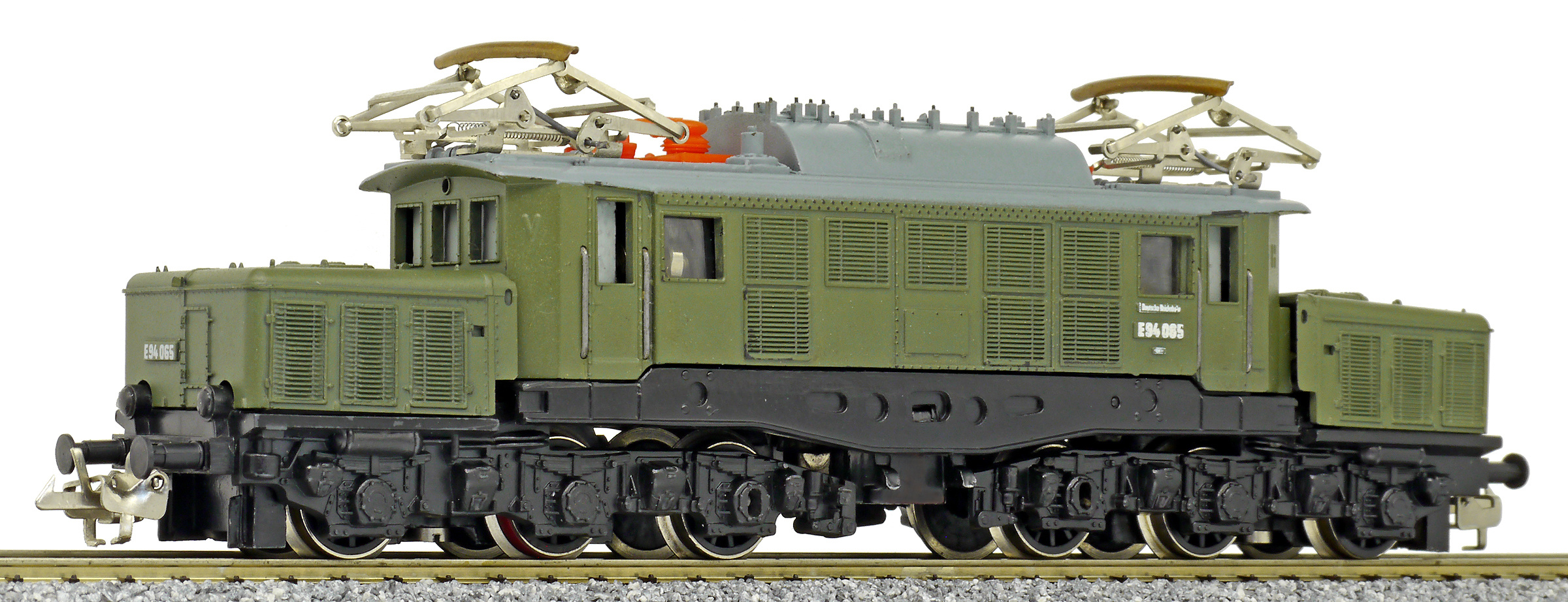 Kód   502793  [Lokomotivy] → [Elektrické] → [BR 194] → 502793: elektrická lokomotiva zelená s šedou střechou a červenými podvozky, červené pantografy