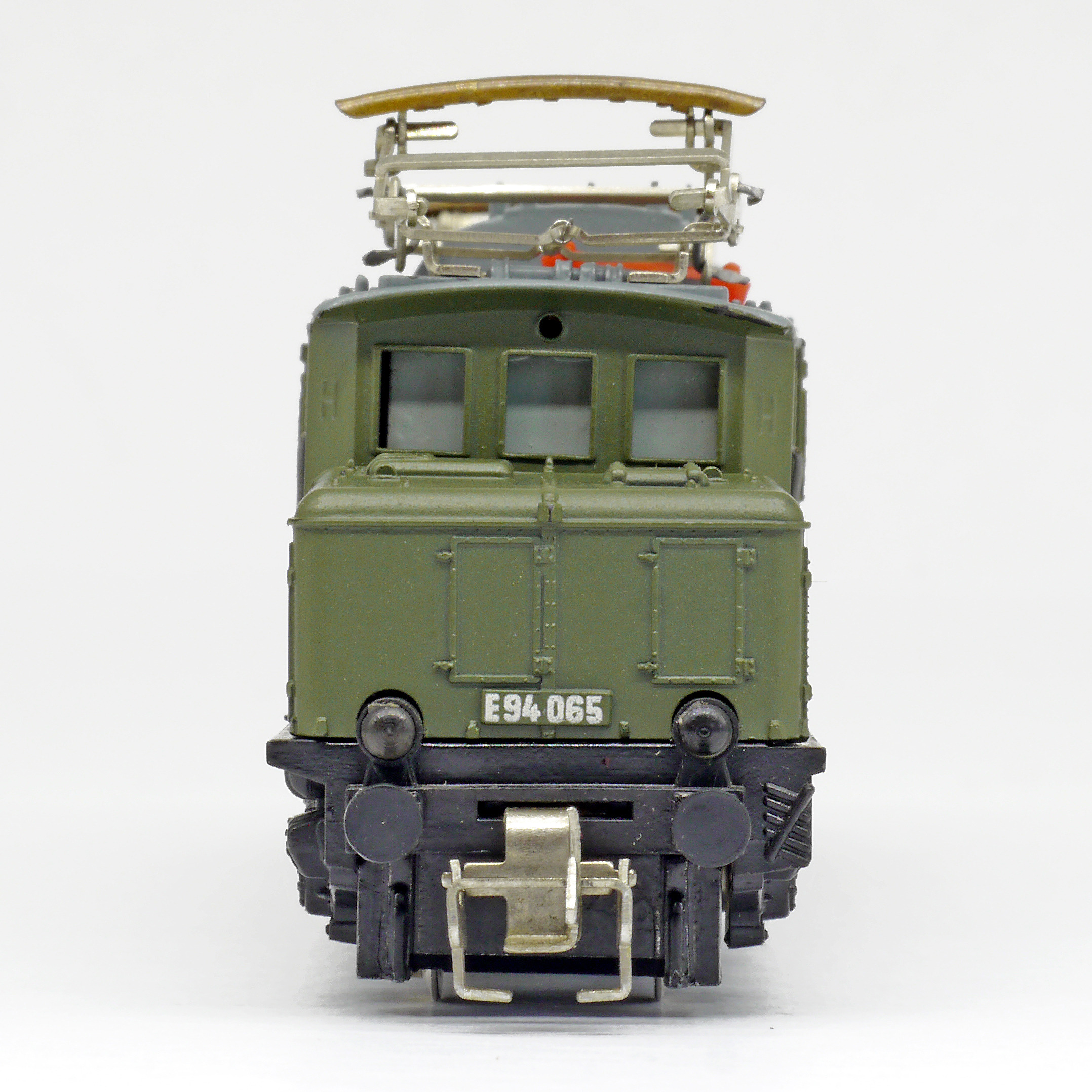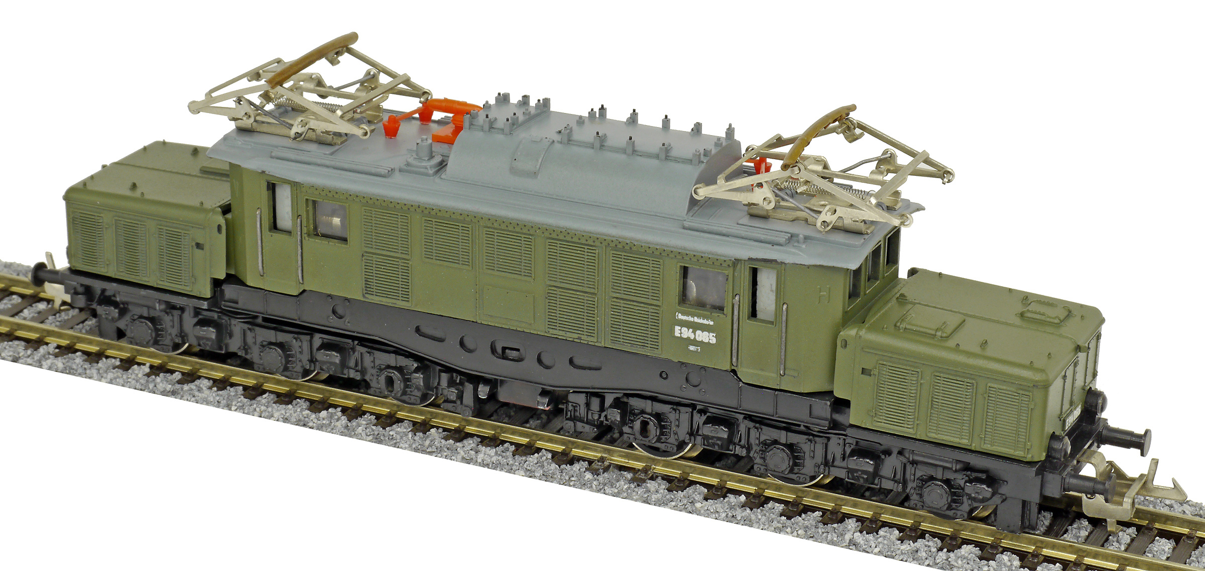 Kód   02410  [Lokomotivy] → [Elektrické] → [BR 194] → 02410: elektrická lokomotiva zelená s šedou střechou a červenými pantografy a podvozky