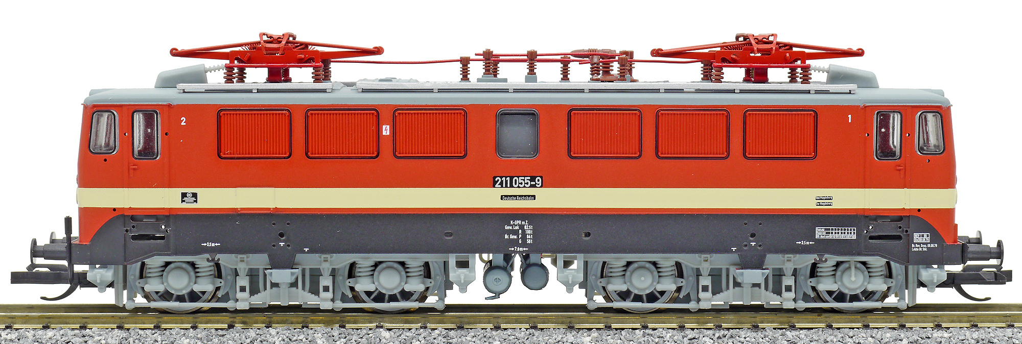 Popis   elektrická lokomotiva červená s krémovým pruhem, šedé podvozky